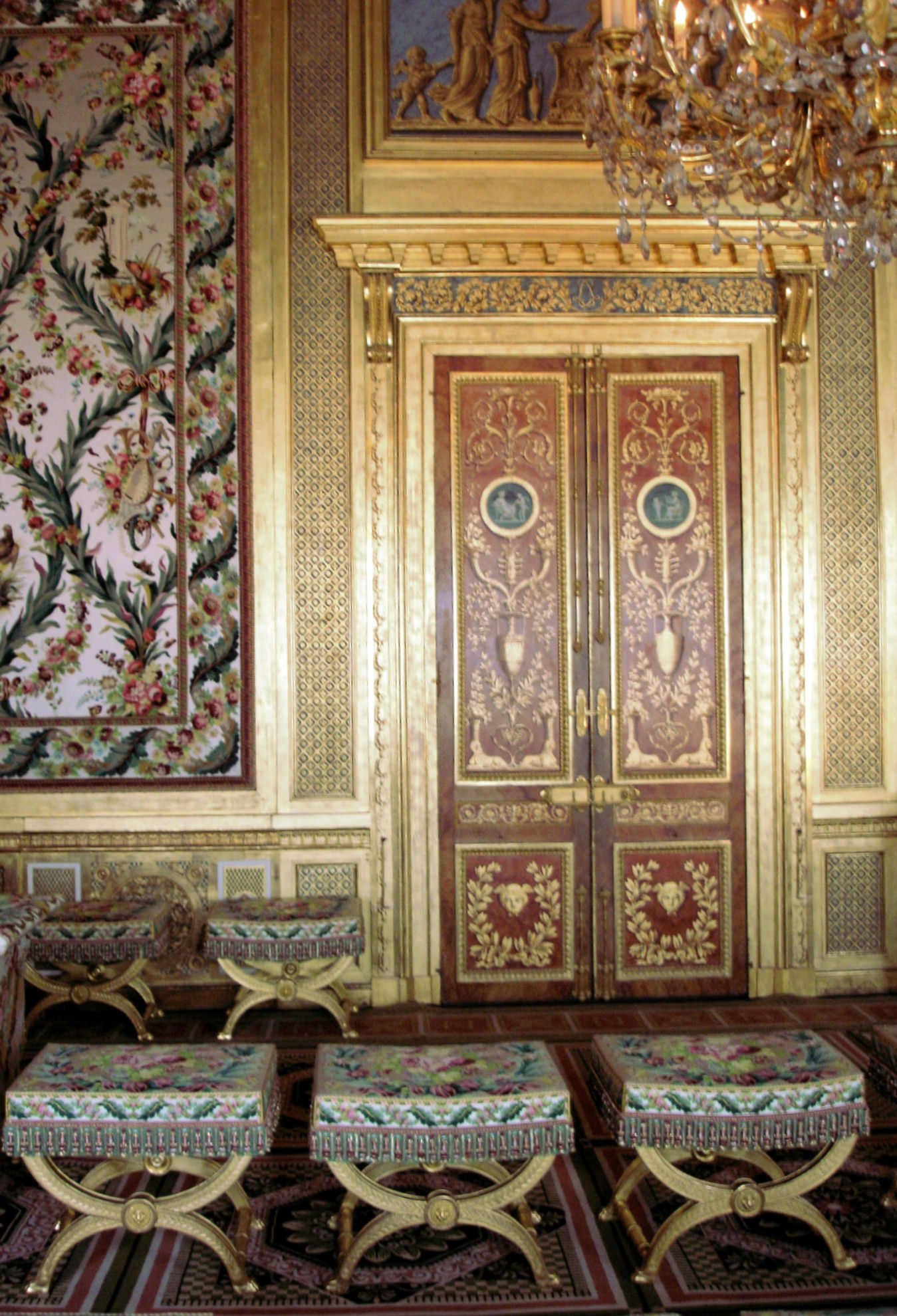 루이 14세 양식을 연상시키는 엄격한 대칭성이 앙피르 양식 장식의 특징이다. 작품의 오른쪽과 왼쪽 모티프는 모든 세부 사항에서 서로 일치한다. 그렇지 않은 경우, 개별 모티프 자체가 완전히 대칭적인 구성을 이룬다. 루이 14세처럼, 나폴레옹은 자신의 통치를 상징하는 문장들을 사용했는데, 특히 독수리, 벌, 별, 그리고 황제의 월계관 안에 새겨진 I(''황제''를 의미)와 N(''나폴레옹''을 의미)이 대표적이다.[6]사용된 모티프는 다음과 같다: