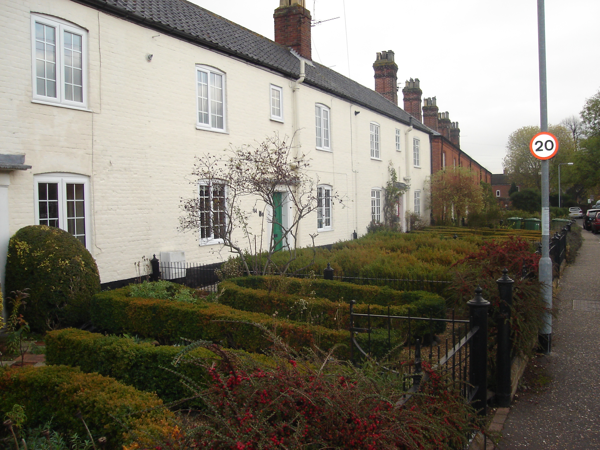 영국 도시 주택은 원래 집 앞과 거리가 분리되어 있지 않았다. 19세기 후반, 빅토리아 건축 내의 가정 부흥 양식의 일환으로 새로운 주택에 앞뜰을 제공하는 것이 일반적인 관행이 되었다. 앞뜰은 대체로 장식적이었으며, 처음에는 코티지 정원 스타일이 채택되었다.[17][18][19][20]20세기 초, 에비니저 하워드가 1898년에 시작한 전원 도시 운동의 영향을 받은 주택 개발은 앞쪽에 분할되지 않은 "공동 잔디밭"을 갖춘 단독 주택을 특징으로 했다.[21] 제2차 세계 대전 이후, 영국의 새로운 주택의 지배적인 형태는 반독립 주택이었고, 앞뜰은 빅토리아 시대의 주택보다 낮은 벽으로 거리와 분리되었다.[22][23]