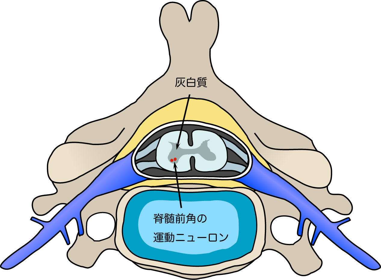 근위축성 측삭 경화증, 척수성 근위축증, 샤르코-마리-투스 병과 같은 질환(일본에서는 잘 사용되지 않으며, SBMA와 함께 운동 신경 세포 질환이라고 부르는 경우가 많다)에서 변성이 일어나는 것은 앞회색질기둥에 있는 세포이다. 구척수성 근위축증(SBMA, 케네디병)에서도 마찬가지이다.