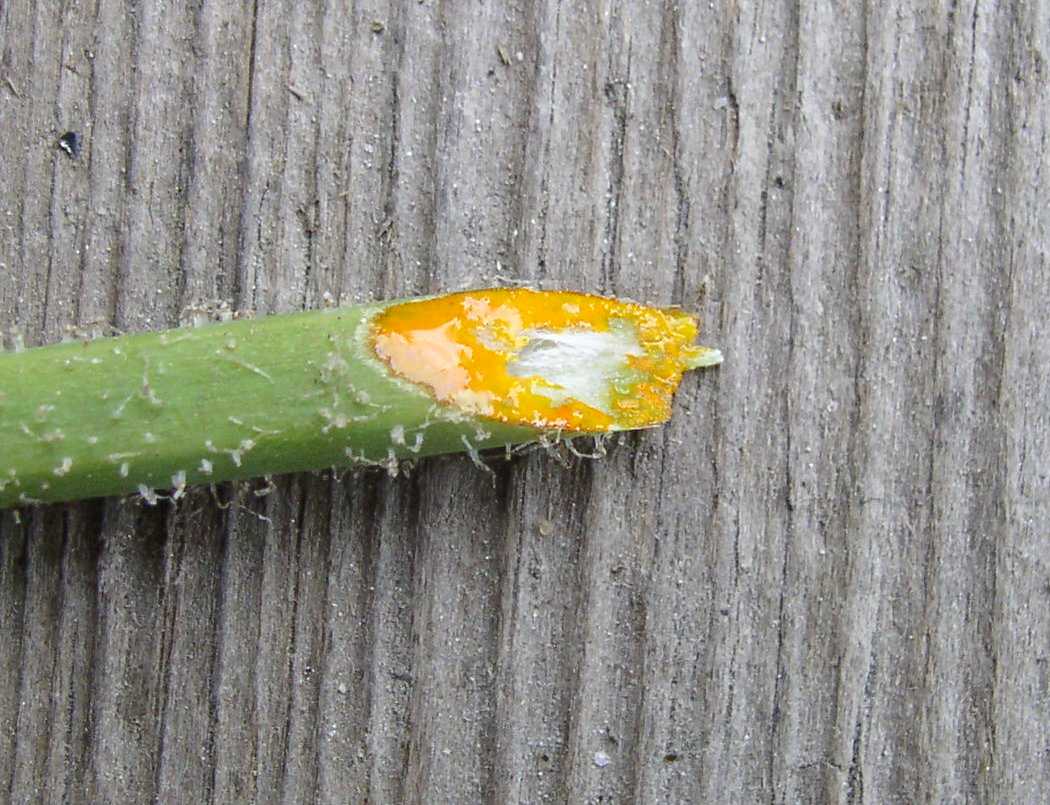 # 식물체를 손상시키면 노란색에서 주황색 유액이 나오기 때문에 '''풀의 황'''이라는 설.