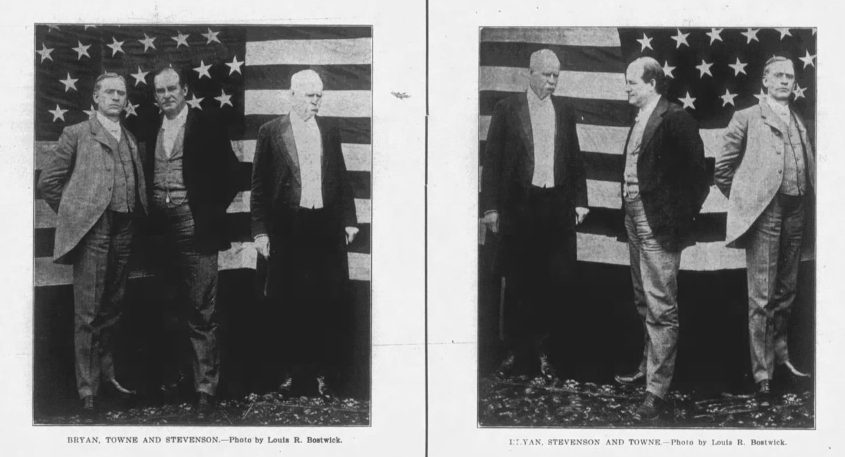 인민당은 이미 브라이언과 찰스 A. 타운(미네소타 출신의 친 자유은본위제 공화당원)을 지명했지만, 민주당이 다른 사람을 지명하면 타운이 물러날 것이라는 암묵적인 합의가 있었다. 브라이언은 타운을 선호했지만, 민주당은 자당 인사를 원했고, 당의 주류는 스티븐슨에게 편안함을 느꼈다. 타운은 물러났고 브라이언과 스티븐슨을 위해 선거운동을 벌였다. 1892년 클리블랜드와 함께 출마했던 스티븐슨은 1900년 클리블랜드의 라이벌인 브라이언과 함께 출마하게 되었다. 브라이언보다 25살 연상인 스티븐슨은 티켓에 나이와 경험을 더했다. 그럼에도 불구하고, 그들은 현직 대통령 윌리엄 맥킨리와 시어도어 루즈벨트의 공화당 후보에게 크게 패배했다.