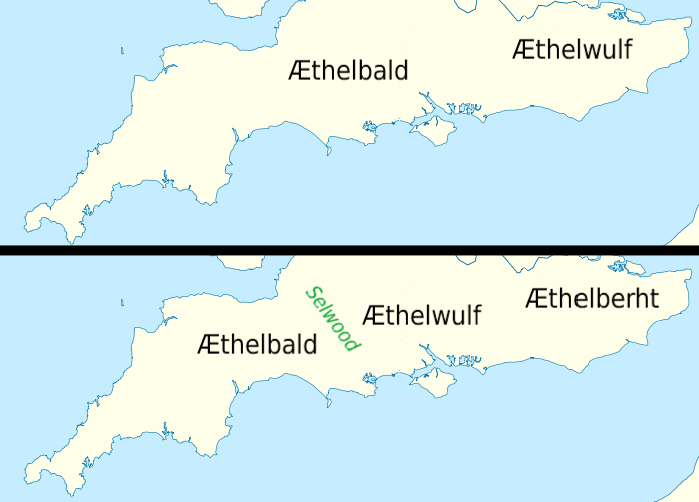 동서 웨섹스 간의 경쟁 또한 분쟁의 원인이었을 수 있다. 고대 셀우드 숲은 서쪽의 셜본 주교와 동쪽의 윈체스터 주교의 경계였다. 8세기에 에그버트 가문은 서쪽과 관련이 있었지만, 9세기 초에는 윈체스터 성직자들과 가까워졌고, 이는 왕좌에 대한 배타적인 지위를 확립하는 데 도움이 되었다. 아서에 따르면, 애설울프를 몰아내려는 음모는 "셀우드의 서쪽 부분"에서 시작되었고, 애설볼드의 주요 지지자들은 서부의 유력자였을 가능성이 있다.