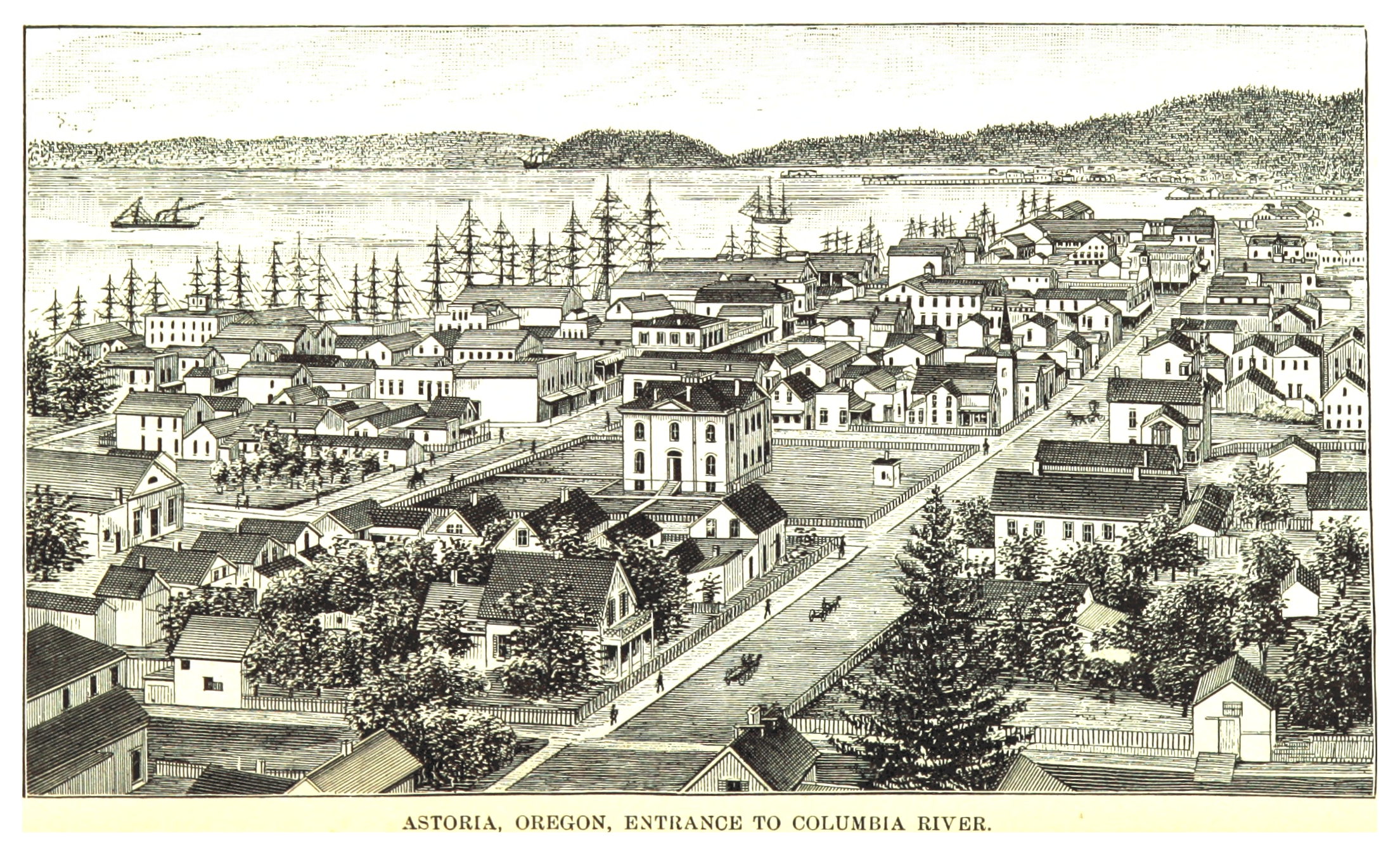 오리건 준주가 성장하면서 애스토리아는 컬럼비아강 하구의 항구 도시로서 번영했다. 1847년, 로키산맥 서쪽 최초의 우체국이 애스토리아에 설립되었고, 1876년에는 시로 승격되었다.