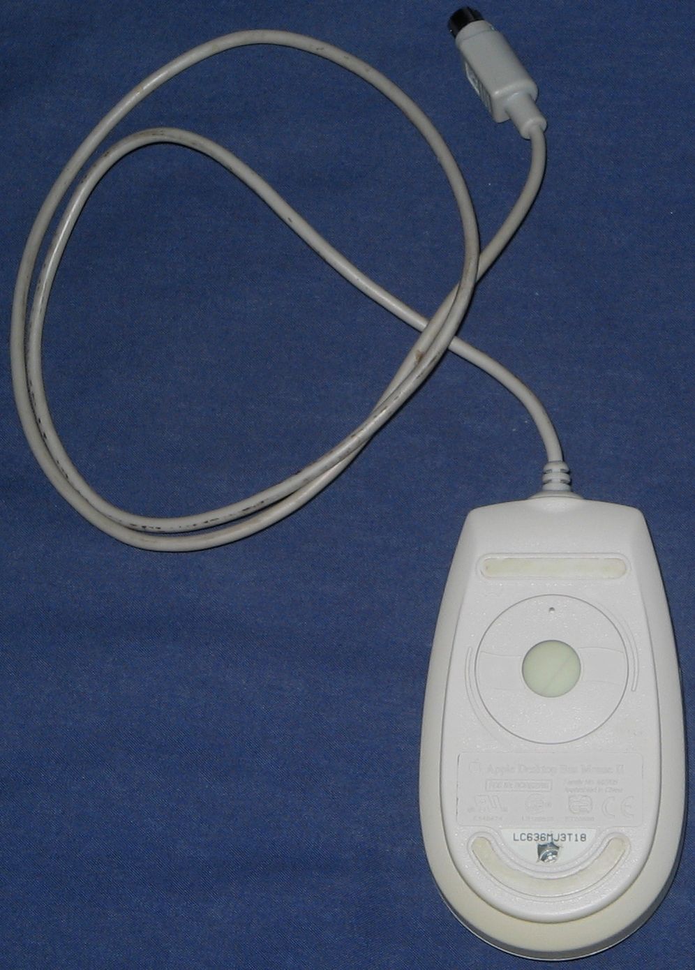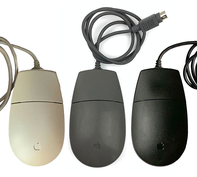 매킨토시 마우스 (M0100)1984년고무 재질 볼, 손으로 돌려 고정 가능한 나사 추가DE-91986년 케이블 단자 형태 변경, 1987년 "플래티넘" 회색 채택