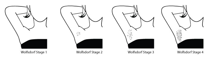 겨드랑이 털은 4단계의 발달 단계를 거치는데, 이는 부신 운동 중 남성과 여성의 부신에서 생성되는 약한 안드로겐과 사춘기 남성의 고환에서 테스토스테론이 생성되면서 발생한다.[2]