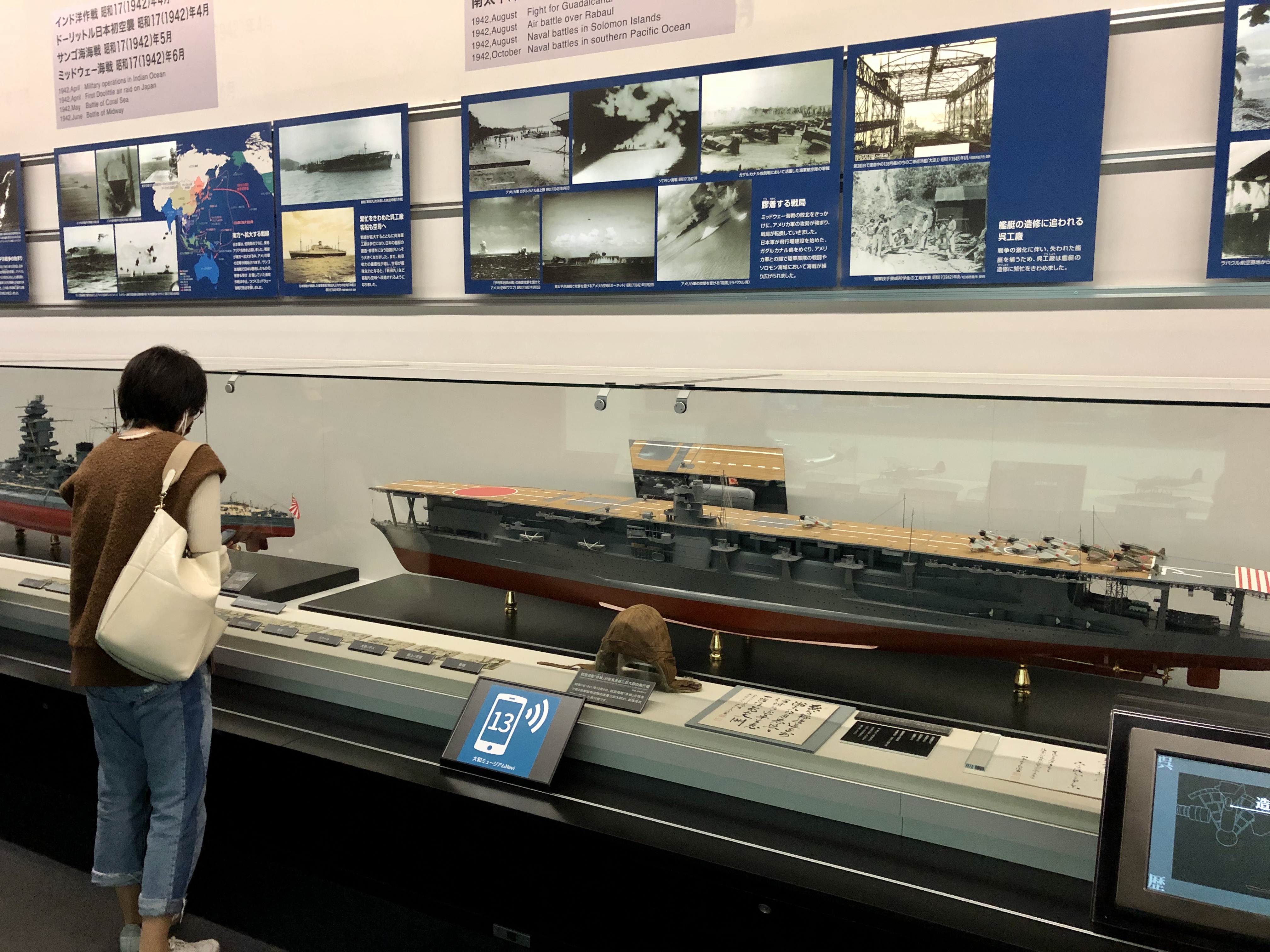 박물관의 상징적인 전시물로는 1층 로비의 1/10 크기 전함 야마토 모형[1] 등이 있으며, 자세한 전시 구성은 하위 문단에서 다룬다.