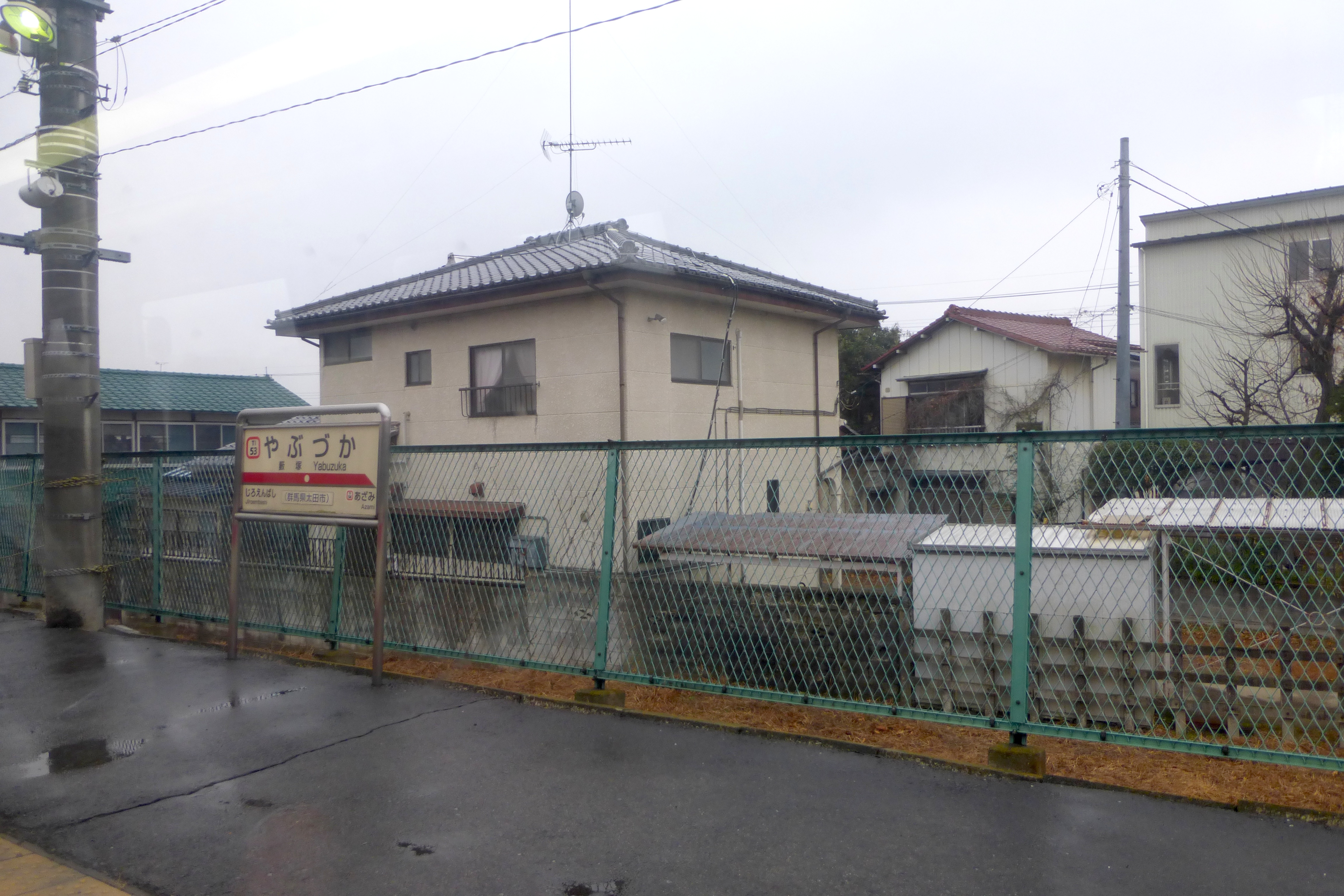 야부즈카역은 일본 군마현 오타시에 위치한 도부 철도 기류선의 역이다. 1913년 3월 19일에 영업을 시작했으며, 2면 2선의 지상역으로 목조 역사를 갖추고 있다. 2012년 3월 17일부터 역 번호가 도입되어 "TI-53"으로 지정되었다. 2023년 기준 1일 평균 승하차 인원은 1,016명이며, 역 주변에는 오타 시청, 도서관, 문화 시설 등이 위치한다.