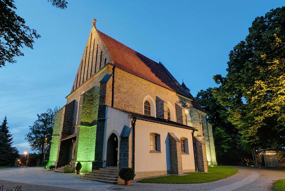 드우고슈는 그의 저서 ''크라코비엔 교구의 혜택의 책''에서 현재의 교회는 1446년에 스타니스와프 치엘라트코, 산도미에르츠 학자 형제 및 치오우에크 문장의 미코와이 형제가 지었다고 기록하고 있는데, 이는 원래 교회가 헝가리인들에 의해 파괴되었기 때문이다.[2] 스트르제미에, 트롬비, 그리프, 야니나, 포보그의 문장이 교회의 금고에 있는데, ''지리 사전''은 이것들이 발전에 기여한 귀족 가문일 것이라고 추측한다.[2]