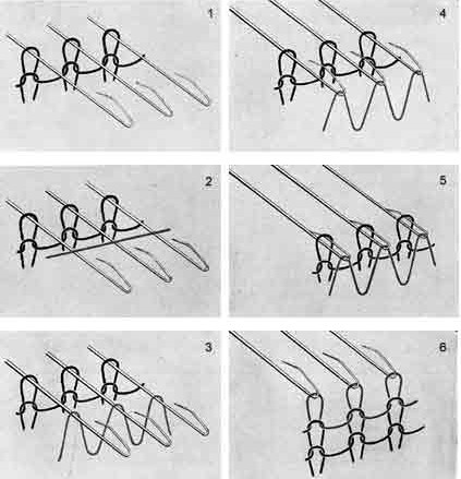 # 잭 싱커가 편물 앞쪽으로 내려와 위로 잡아당겨 이 과정을 다시 시작할 수 있게 한다.