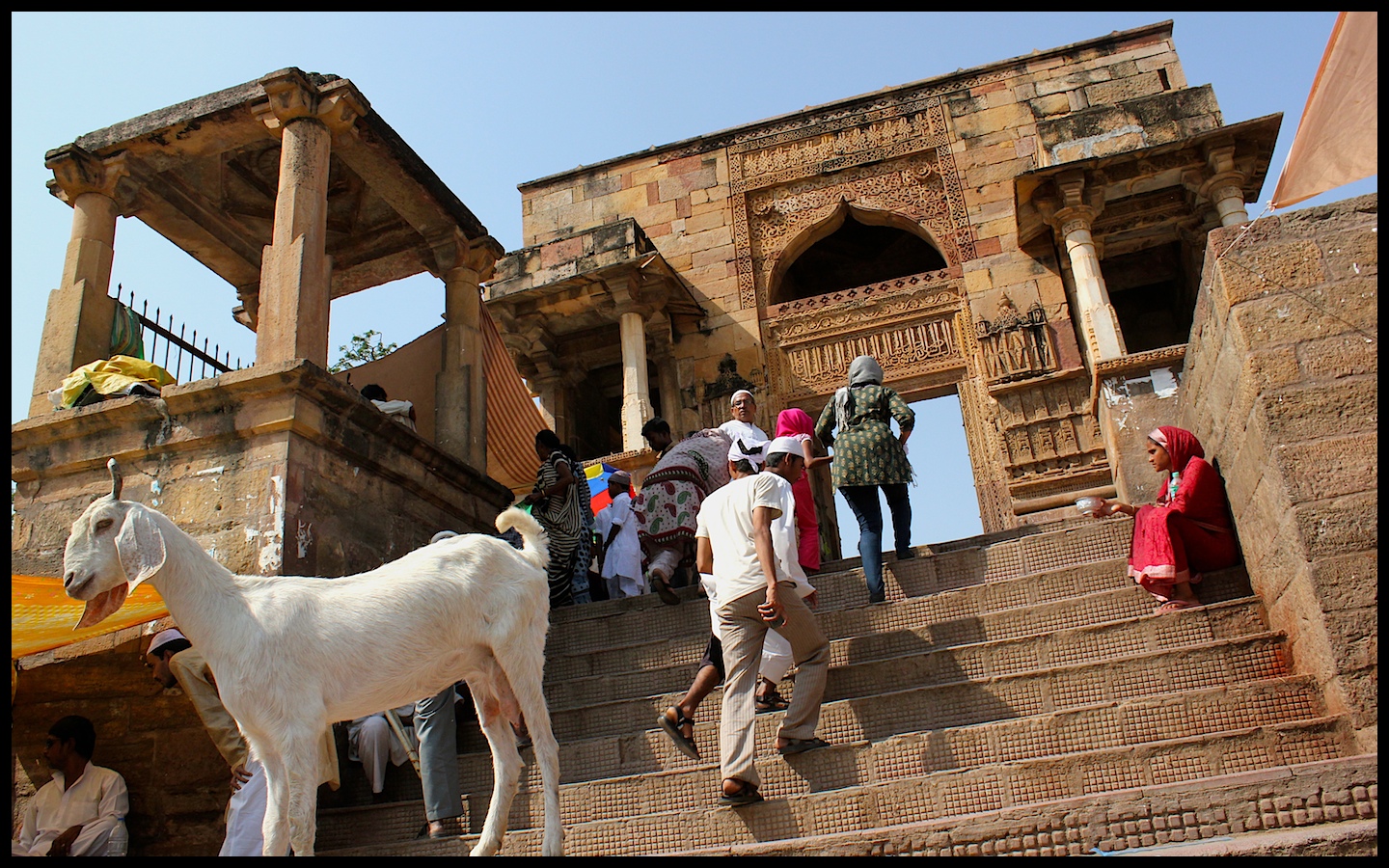인도의 사원 앞에 놓여진 양. 서아시아에서 남아시아까지 많은 종교가 번제 희생물로 양을 사용한다.