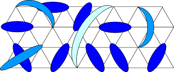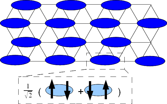 원자가 결합 고체. 결합은 특정 패턴을 형성하며 얽힌 스핀 쌍으로 구성된다.