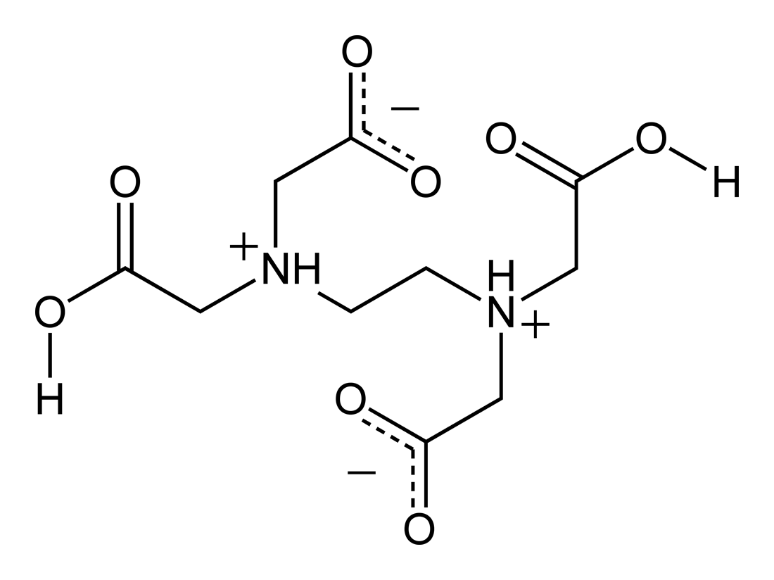 고체 상태에서 H4EDTA는 카복실산 그룹에서 질소 원자로 두 개의 양성자가 이동된 양쪽성 이온이다.[8]