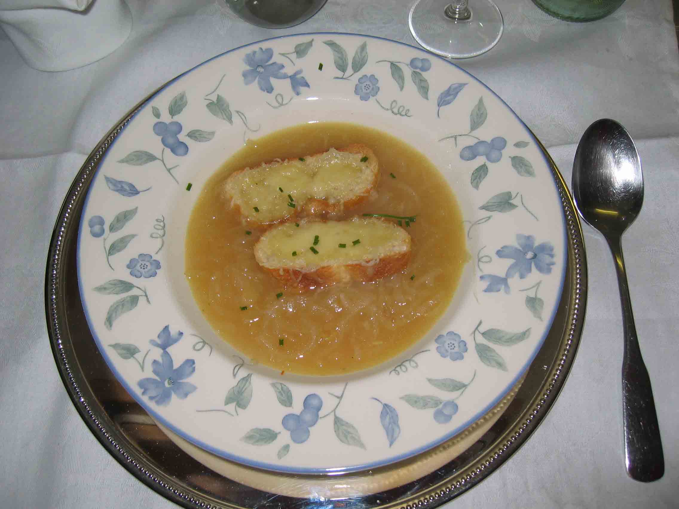| 주 재료 | 양파, 쇠고기 또는 닭 스톡, 크루통, 간 치즈 |