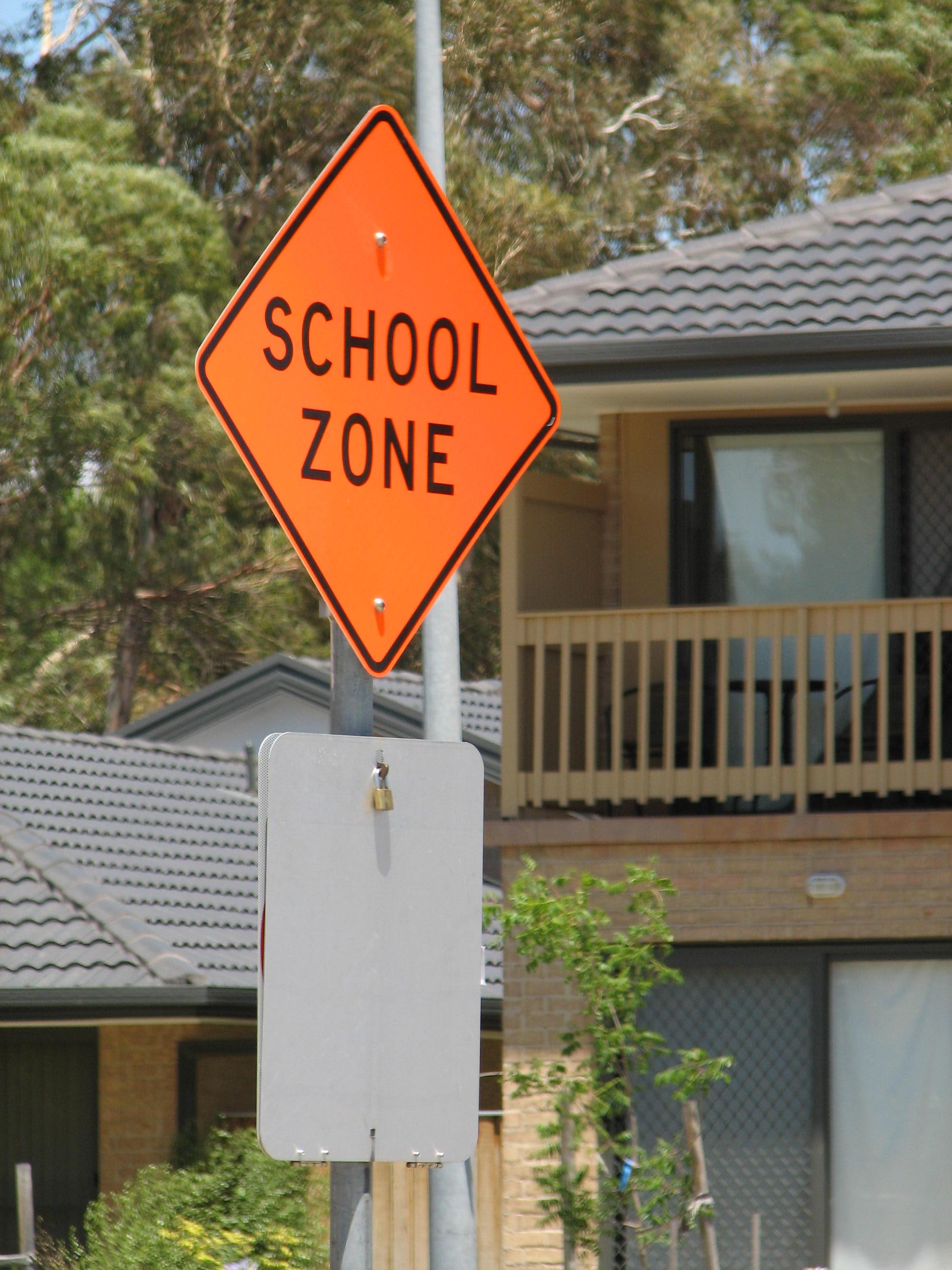 오스트레일리아 뉴사우스웨일스주에서는 학교 구역 시간 동안 학교 구역에서 발생하는 벌금이 증가한다. 학교 구역에서 발생하는 가장 흔한 위반 사항에는 벌점도 부과된다. 여기에는 보도 또는 잔디밭 주차, 이중 주차, 정차 금지 또는 주차 금지 표지판 위반, 버스 구역 내 정차와 같은 대부분의 주차 위반 사항이 포함된다. 영국에서 학교 옆 정차 벌금은 30GBP이다.[1]