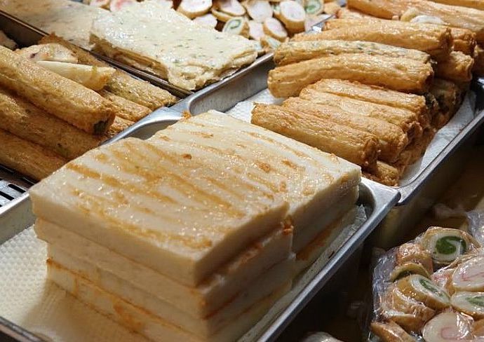 일본에서는 흰살 생선을 으깨어 찐 덩어리 모양의 음식인 ''카마보코''가 있다. 양파, 우엉, 다진 오징어와 새우를 넣어 튀긴 ''사츠마아게''와 다양한 튀김 ''카마보코''도 인기가 있다.