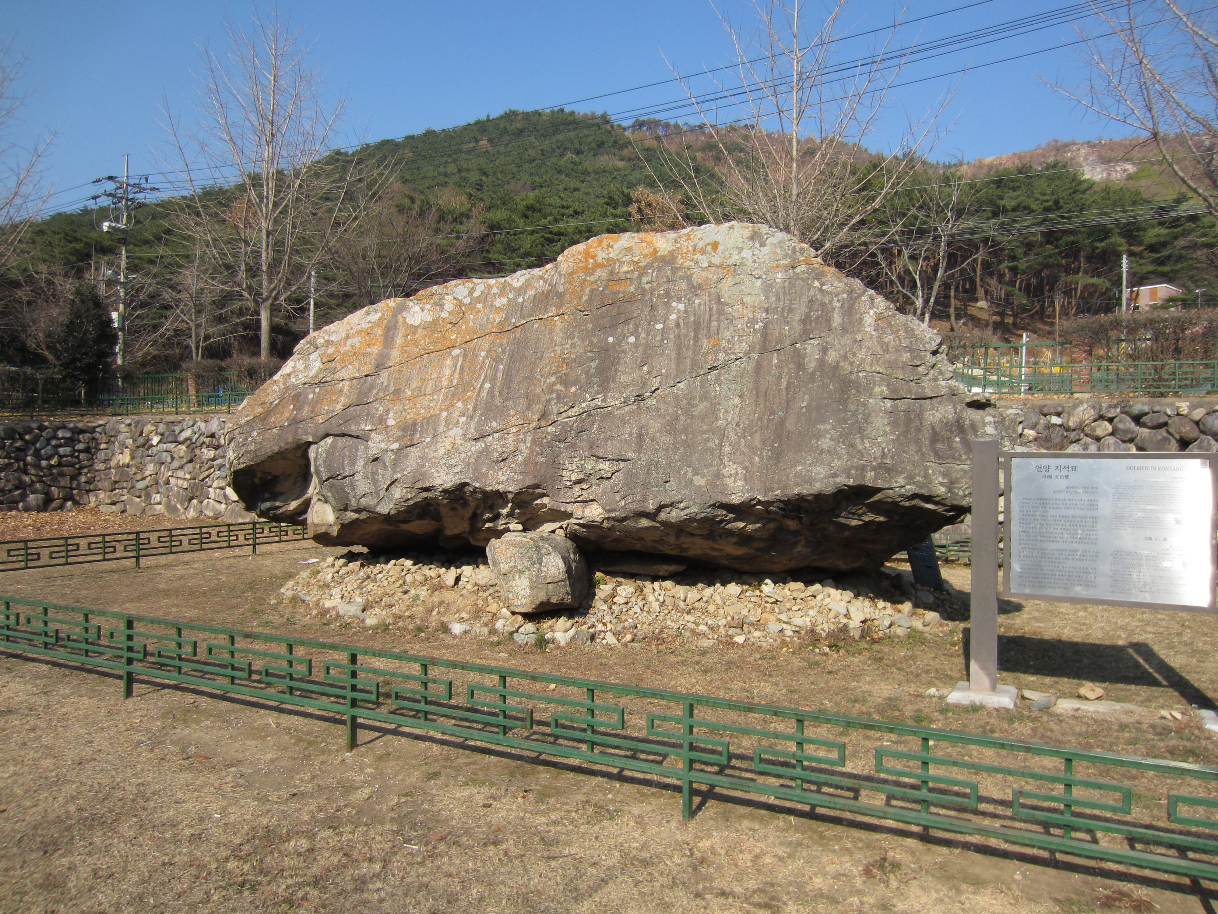언양읍에는 여러 개의 고인돌(dolmen) 또는 거석묘가 있다. 그 예로 지역 주민들이 "영바우"(Yongbau)라고 부르는 고인돌이 있다.