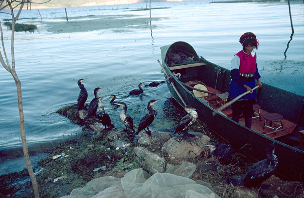 이 호수는 현지 주민(바이족)에게 중요한 식량 공급원이며, 그들의 독특한 어업 방식으로 유명하다. 훈련된 가마우지(cormorant)들이 물고기를 잡아 어부들에게 가져온다. 새들이 물고기를 삼키지 못하도록 목에 고리를 채워 놓는다.