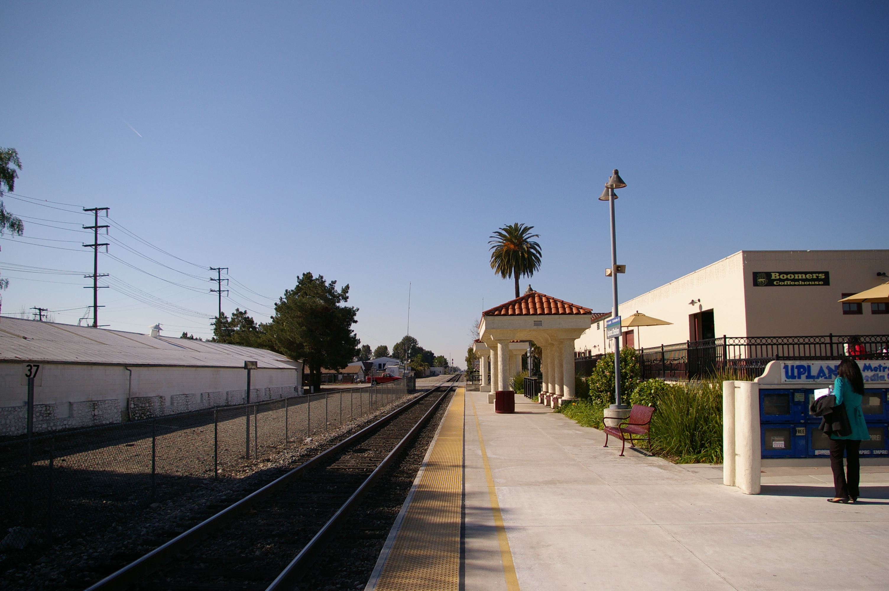 철도는 1887년 노스 온타리오에 도착했다. 1887년 애치슨, 토피카 및 산타페 철도는 노스 온타리오의 매그놀리아 트랙 인근에 연결을 완료했다. 매그놀리아의 세분화업체인 베드포드 형제는 주요 상업 거리인 세컨드 애비뉴 기슭에 역을 건설할 계획을 발표했다. 1887년 12월 온타리오 레코드에 실린 공지에 따르면 역 건설 비용은 7000USD가 될 것이다. 그 후 수십 년 동안 여러 포장 공장이 A 스트리트 양쪽 선로 근처에 건설되었다. 철도는 업랜드를 서쪽의 로스앤젤레스와 동쪽의 나머지 산타페 네트워크에 연결했다.[27]