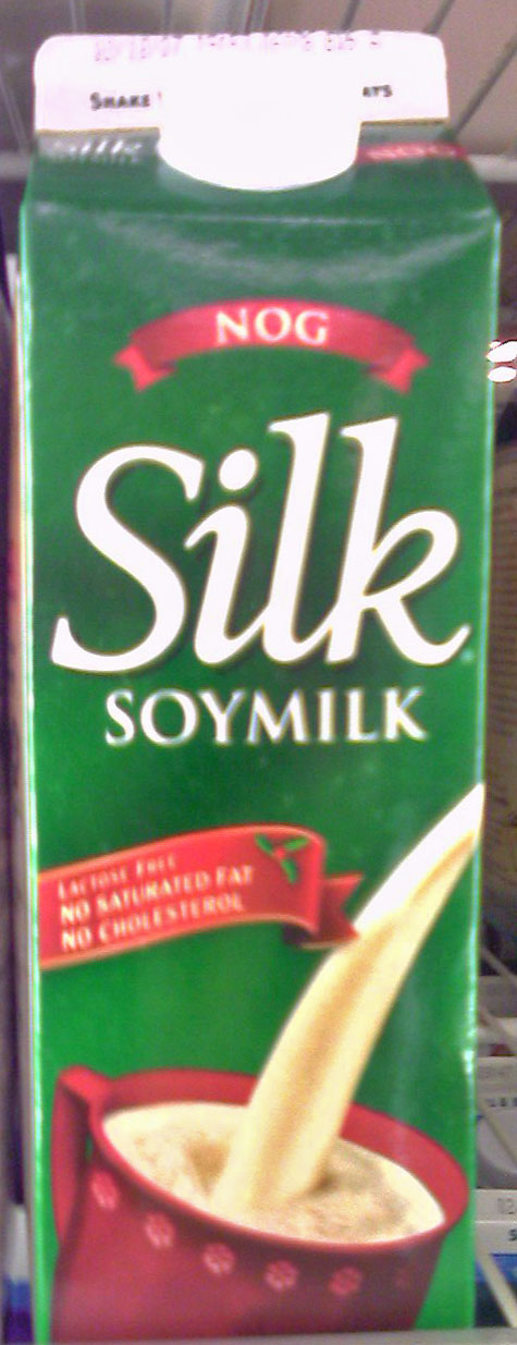 1981년, 캘리포니아주 로스앤젤레스의 Grain Country는 최초의 비유제품이자 비건 에그노그인 Grain Nog를 출시했다. 아마자케를 기반으로 하며 달걀을 전혀 사용하지 않은 Grain Nog는 플레인, 딸기, 캐롭 맛으로 출시되었다. 또한 1981년에 Redwood Valley Soyfoods Unlimited (캘리포니아)는 두유와 두부를 기반으로 한 최초의 두유 기반 비유제품이자 비건 에그노그인 "Soynog"를 출시했다. 이 제품은 1982년에 Lite Nog, 1985년에 Tofu Nog로 이름이 변경되었다.