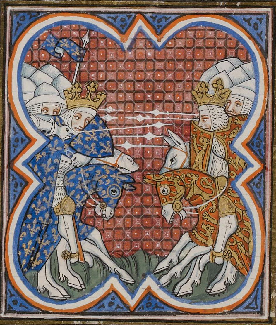 1349년 말, 흑태자는 칼레 전투에서 위기에 빠진 부왕을 구하기 위해 참전하였다. 전투는 잉글랜드의 승리로 끝났고, 에드워드 3세가 포로로 잡은 프랑스 귀족들을 위해 연회를 열자 흑태자는 다른 영국 기사들과 함께 왕과 손님들에게 첫 번째 코스를 제공한 후 다른 테이블에 앉았다.[110][23]