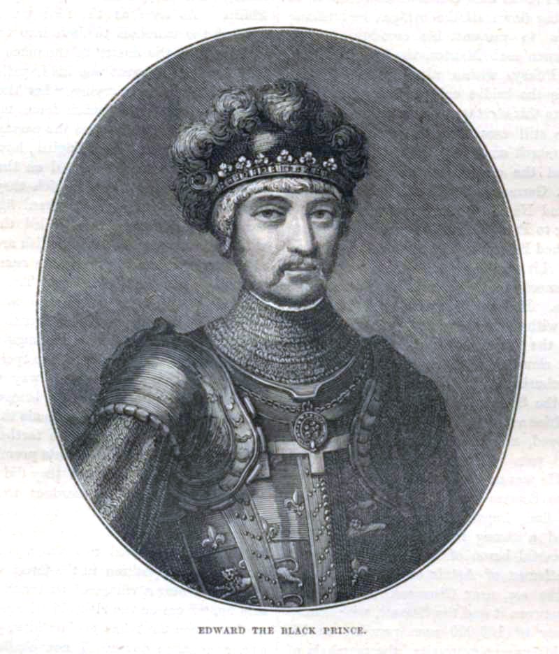 에드워드 흑태자는 잉글랜드 국왕 에드워드 3세의 장남으로, 1330년에 태어났다. 그는 1337년 콘월 공작에 봉해졌고, 1343년에는 웨일스 공이 되었다. 백년 전쟁에 참전하여 크레시 전투에서 승리하는 등 군사적 재능을 보였으며, 가터 훈장 기사단의 일원이 되었다. 1362년 아키텐 공작으로 임명되어 통치했으나, 과도한 세금 부과로 불만을 샀다. 스페인 원정에서 승리했지만, 재정적 어려움과 건강 악화로 1371년 잉글랜드로 돌아왔으며, 1376년 사망했다. 흑태자라는 별칭은 그의 검은 방패 또는 잔혹한 군사적 명성에서 유래된 것으로 추정된다.