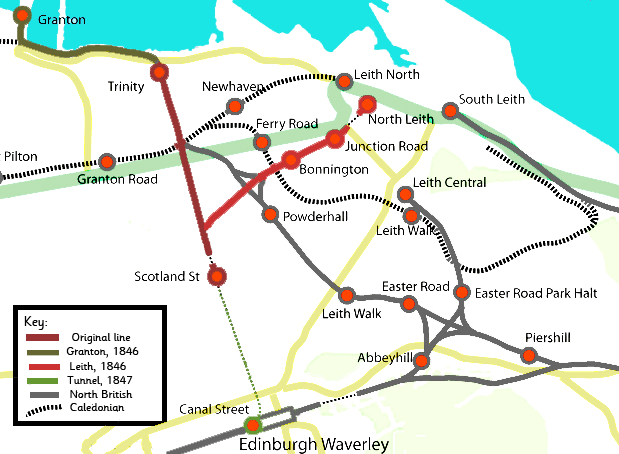 원래 철도 회사 | 에든버러, 레이스 앤 뉴헤이븐 철도 에든버러 앤 글래스고 철도 노스 브리티시 철도 |