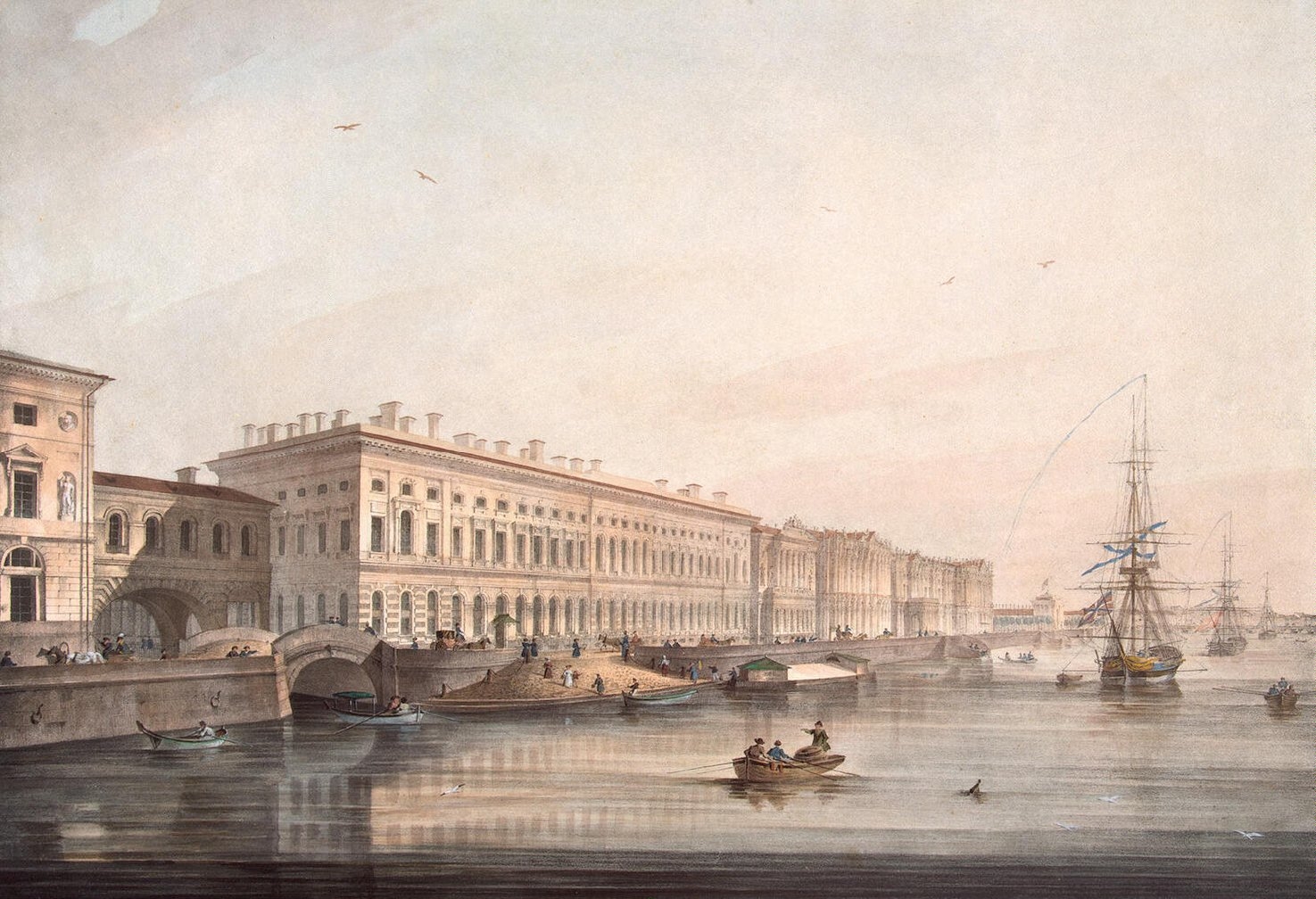 1840년에서 1843년 사이에 바실리 스타소프는 소 에르미타시 남쪽 파빌리온 내부를 재설계했다. 1838년, 니콜라이 1세는 신고전주의 독일 건축가 레오 폰 클렌체에게 공공 박물관 건물을 설계하도록 의뢰했다. 셰펠레프 궁전과 왕실 마구간을 철거하여 소 에르미타시 옆에 박물관 공간을 만들었다. 이 공사는 1842년부터 1851년까지 러시아 건축가 바실리 스타소프와 니콜라이 예피모프가 감독했으며, 라파엘 로지아가 있는 콰렌기(Quarenghi)의 날개를 통합했다.