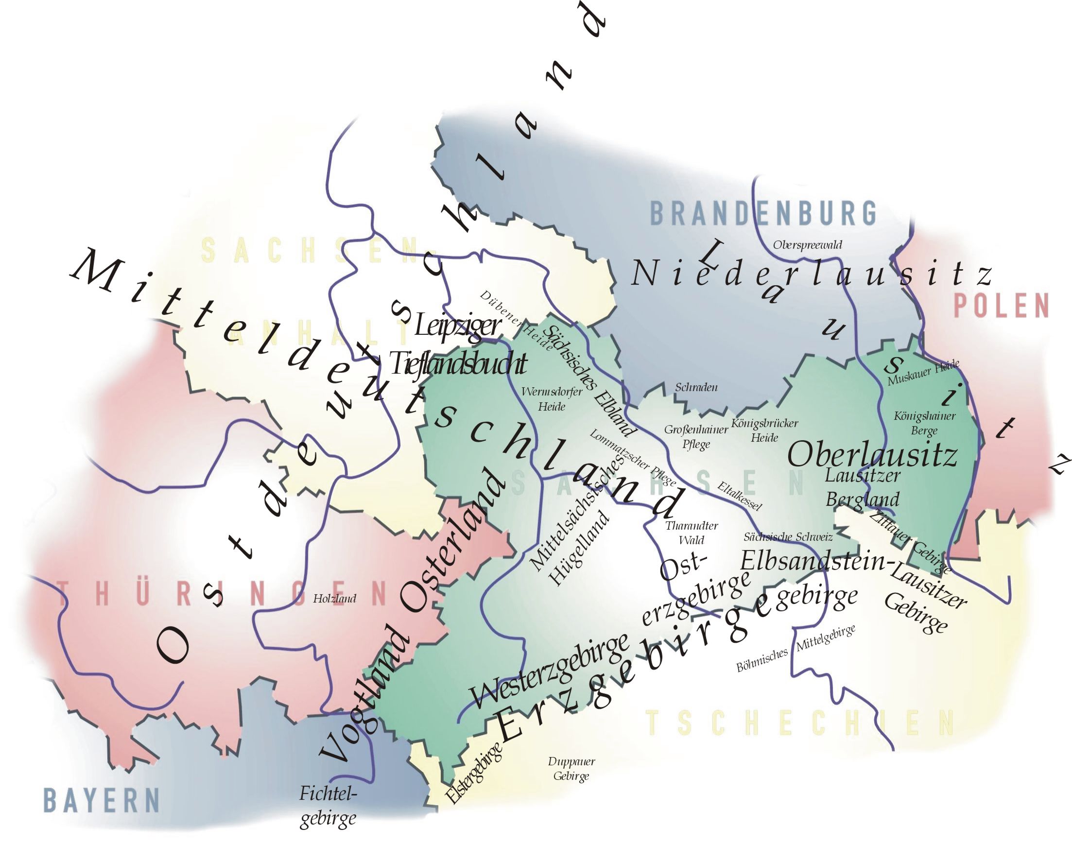 Map of natural regions in Saxony