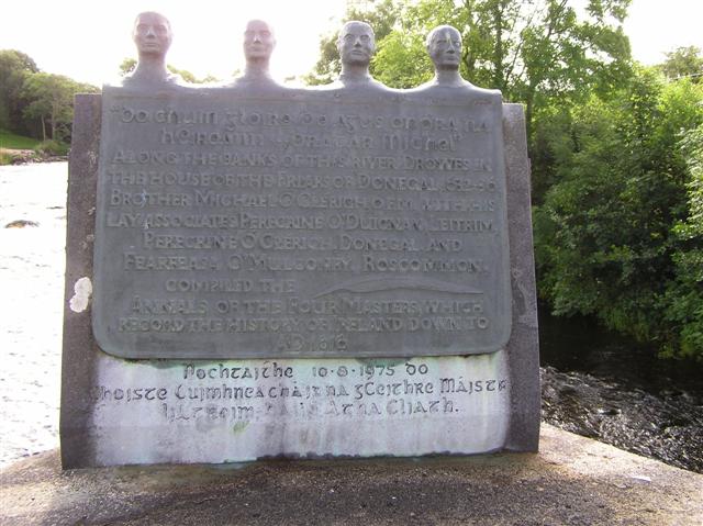 킨로흐 근처 드로즈 강 다리에 위치한 네 명의 대가 기념비. 큐 코이그리체 오 두이베간난의 고향 근처.