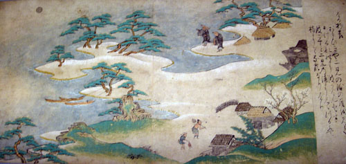 Rouleau de poèmes illustrés représentant la guerre de Gosannen