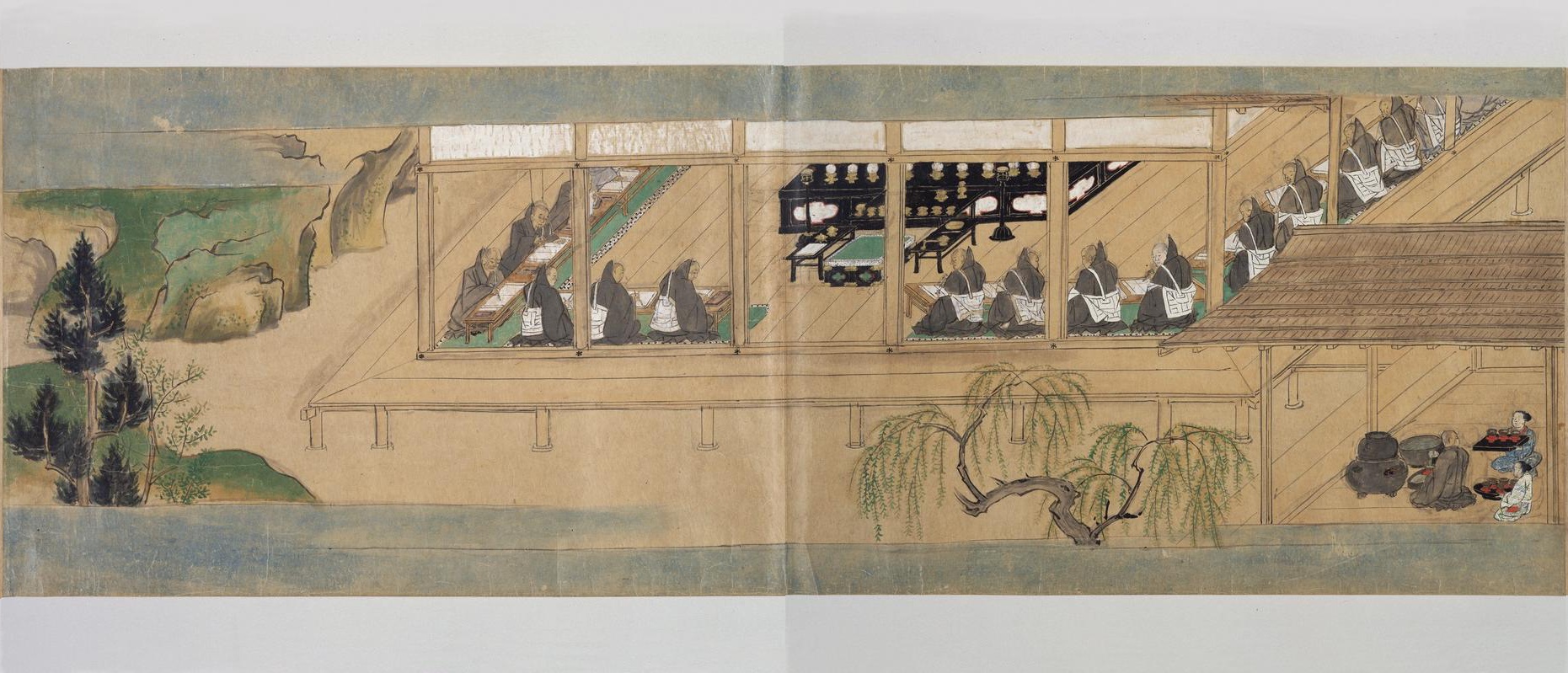 絵巻物|에마키모노|일본어는 종이나 비단을 가로로 길게 이어 붙여 만든 두루마리에 그림을 그린 것이다. 가로로 긴 화면을 활용하여 이야기의 전개나 시간의 흐름을 효과적으로 표현할 수 있다. 에마키모노는 크게 지붕을 걷어낸 구도, 이시동도법, 연속식 구도, 단락식 구도 등의 표현 기법을 사용한다.