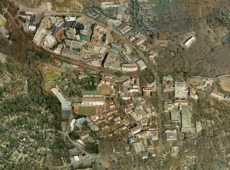 에모리 대학교 캠퍼스(하단)와 질병통제예방센터(상단)의 항공 사진
