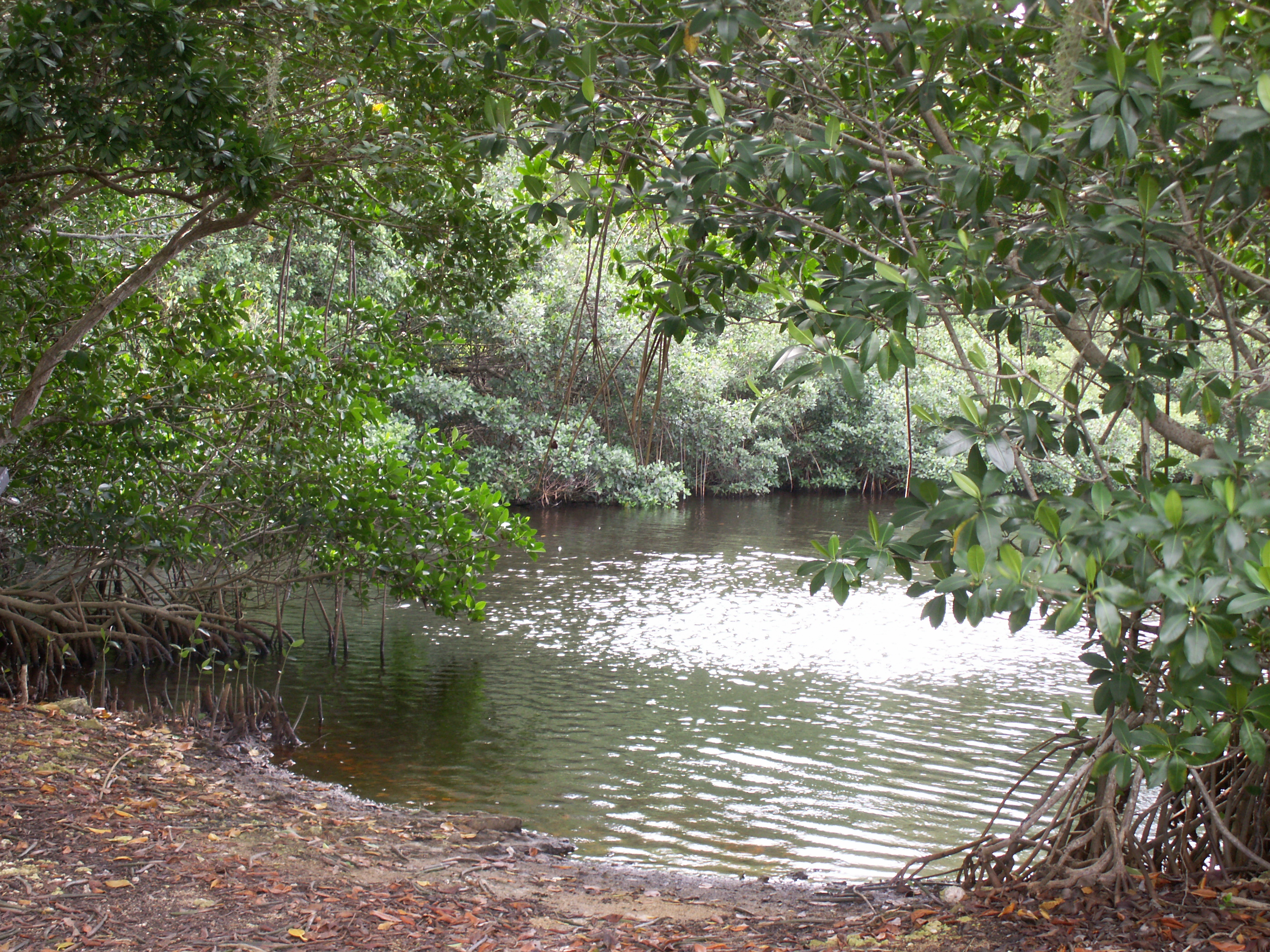 해안과 내부 하구의 대부분은 맹그로브로 이루어져 있으며, 해안 습지와 베이 사이에는 경계가 없다. 따라서 플로리다 베이의 해양 생태계는 에버글레이즈 유역의 일부로 간주되며, 전체 에버글레이즈와 연결되어 영향을 받는 생태계 중 하나이다. 800 평방 마일(약 2,072 km²)이 넘는 플로리다 베이는 에버글레이즈 국립공원에 의해 보호되고 있으며, 공원 경계 내에서 가장 큰 수역을 나타낸다.[79] 플로리다 베이에는 약 100개의 키(키: 섬)가 있으며, 그중 많은 곳이 맹그로브 숲이다.[80] 에버글레이즈에서 플로리다 베이로 유입되는 담수는 베이의 동물 생명의 기초가 되는 광대한 바다풀(거북풀)과 조류 서식지에 완벽한 조건을 만든다. 바다거북과 매너티는 바다풀을 먹고, 벌레, 조개 및 기타 연체동물과 같은 무척추동물은 조류와 미세 플랑크톤을 먹는다.[81] 암컷 바다거북은 매년 해안에 알을 낳으러 돌아오고, 매너티는 겨울철을 베이의 따뜻한 물에서 보낸다. 바다풀은 또한 해저를 안정시키고 파도의 에너지를 흡수하여 해안선 침식을 방지하는 역할을 한다.6. 역사