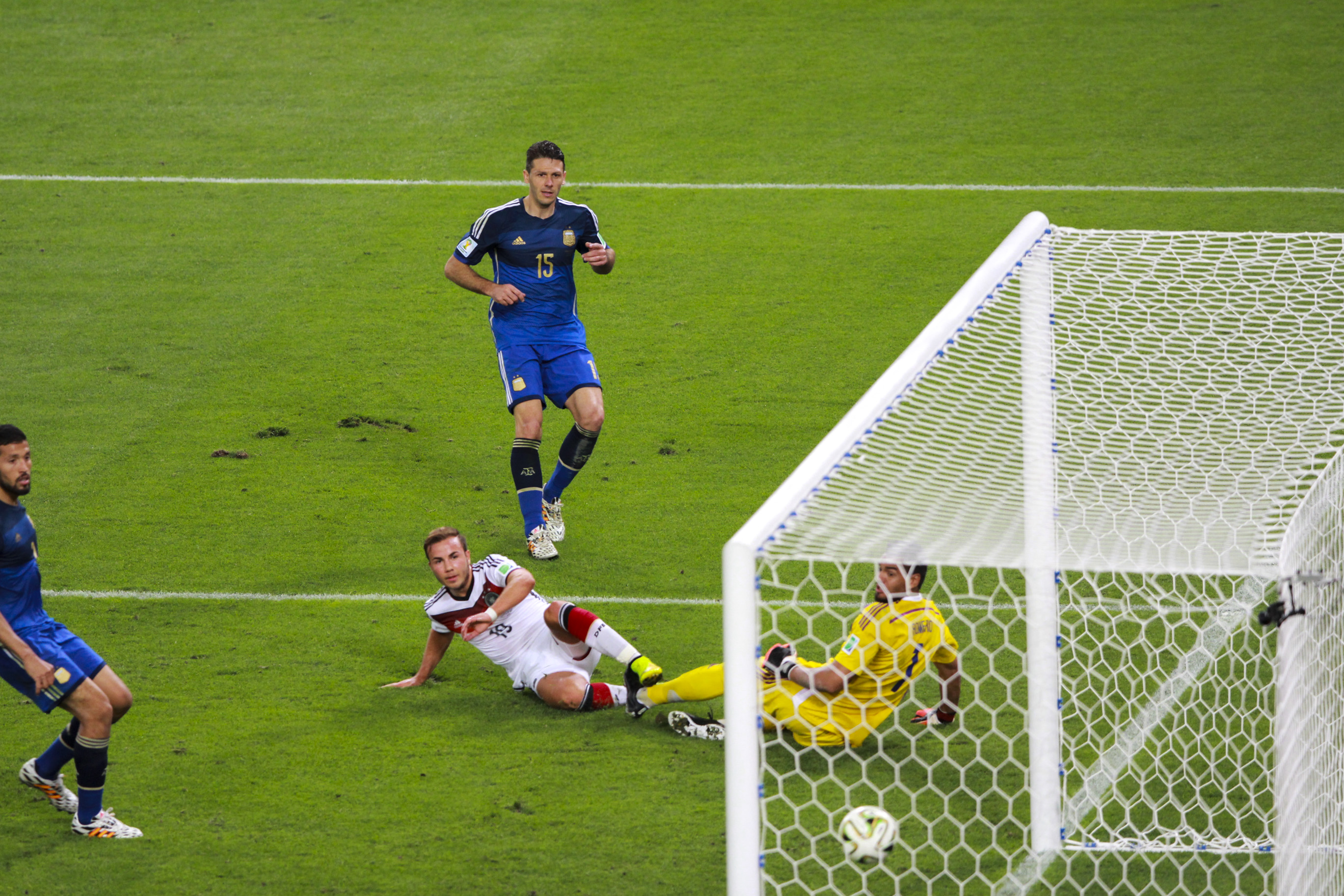 2014년 FIFA 월드컵 결승전에서 독일마리오 괴체가 결승골을 넣는 가운데, 가라이(왼쪽), 마르틴 데미첼리스(가운데), 그리고 세르히오 로메로 골키퍼가 막으려 하고 있다.