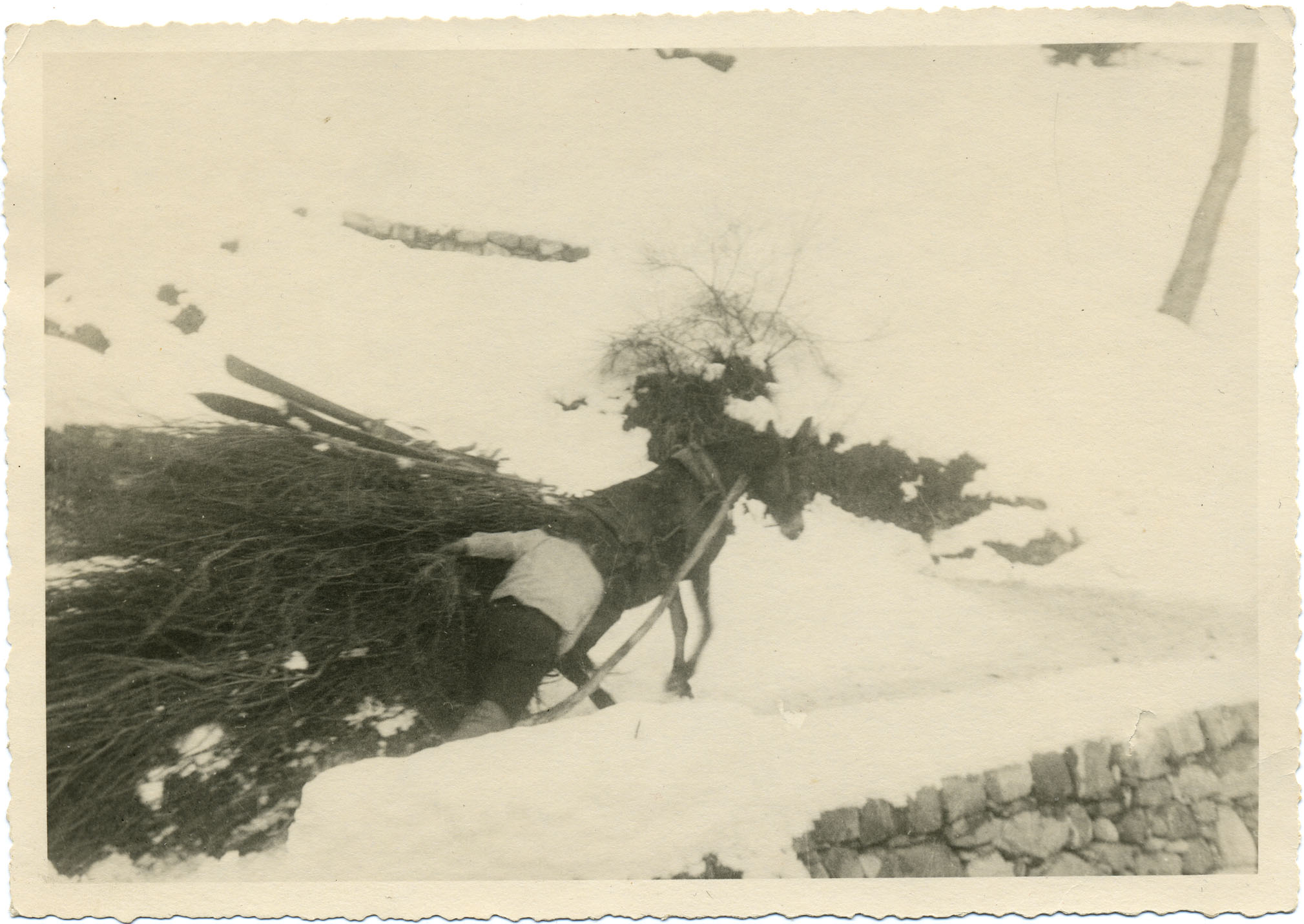 폰테 디 비냐에서 나무 묶음을 운반하는 노새와 함께 있는 사람