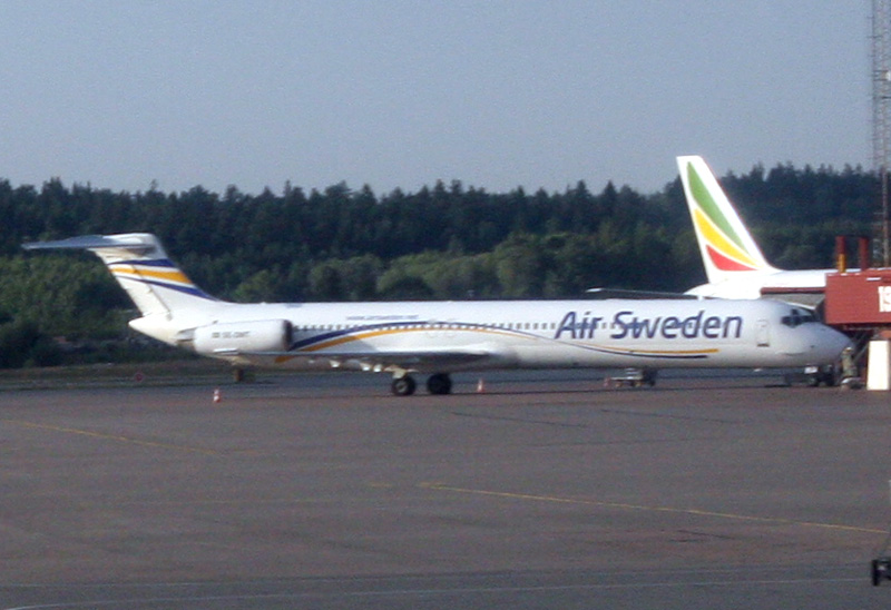 에어 스웨덴 맥도넬 더글러스 MD-81이 스톡홀름-알란다 공항에 착륙하는 모습 (2010년)