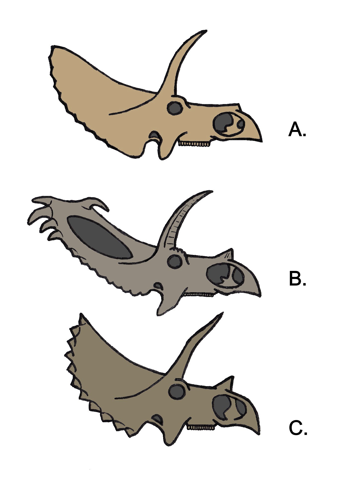 트리케라톱스는 북아메리카에서 발견된 각룡류 공룡의 한 속으로, 거대한 두개골과 뿔이 특징이며 백악기 말기에 번성했고, 현재는 두 종으로 분류된다. - 백악기 후기 북아메리카의 공룡 - 티라노사우루스