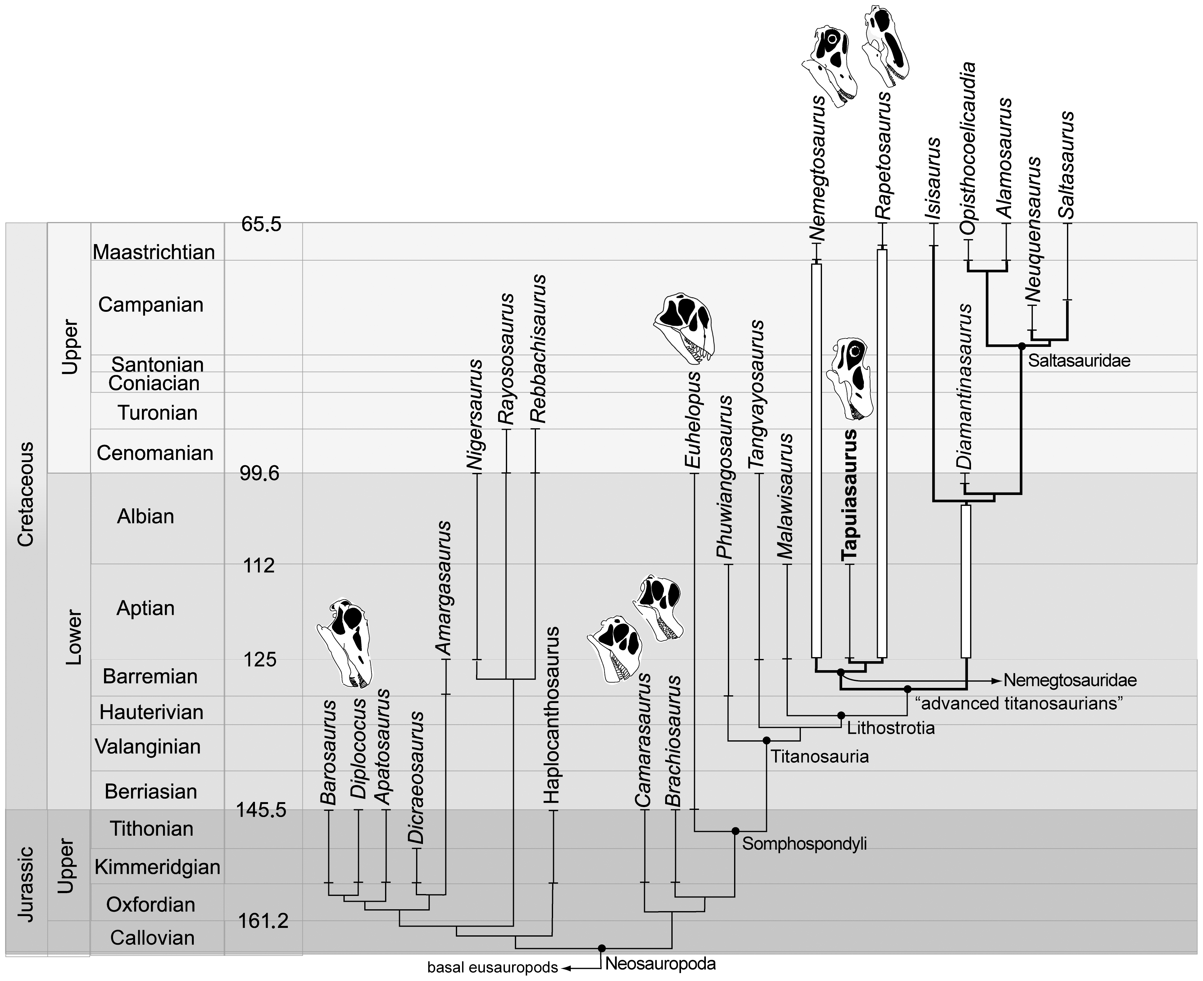 Wilson과 Upchurch (2009)의 계통발생학적 평가에 따르면, ''Euhelopus''는 지리적 격리 기간 동안 발생하여 중국의 이 지리적 범위에 고유한 용각류의 분류군인 에우헬로포디데(Euhelopodidae)에 속한다. 에우헬로포디데가 단일 계통군인지 여부는 불분명하다. ''Euhelopus''는 티타노사우루스류와 계통발생학적 유연성을 보인다. ''Euhelopus'', 오메이 사우루스, 마멘키사우루스, 슈노사우루스가 단일 계통군인 "에우헬로포디데"를 형성한다는 전통적인 주장은 새로운 계통발생학적 분석에 의해 뒷받침되지 않는다.[8]