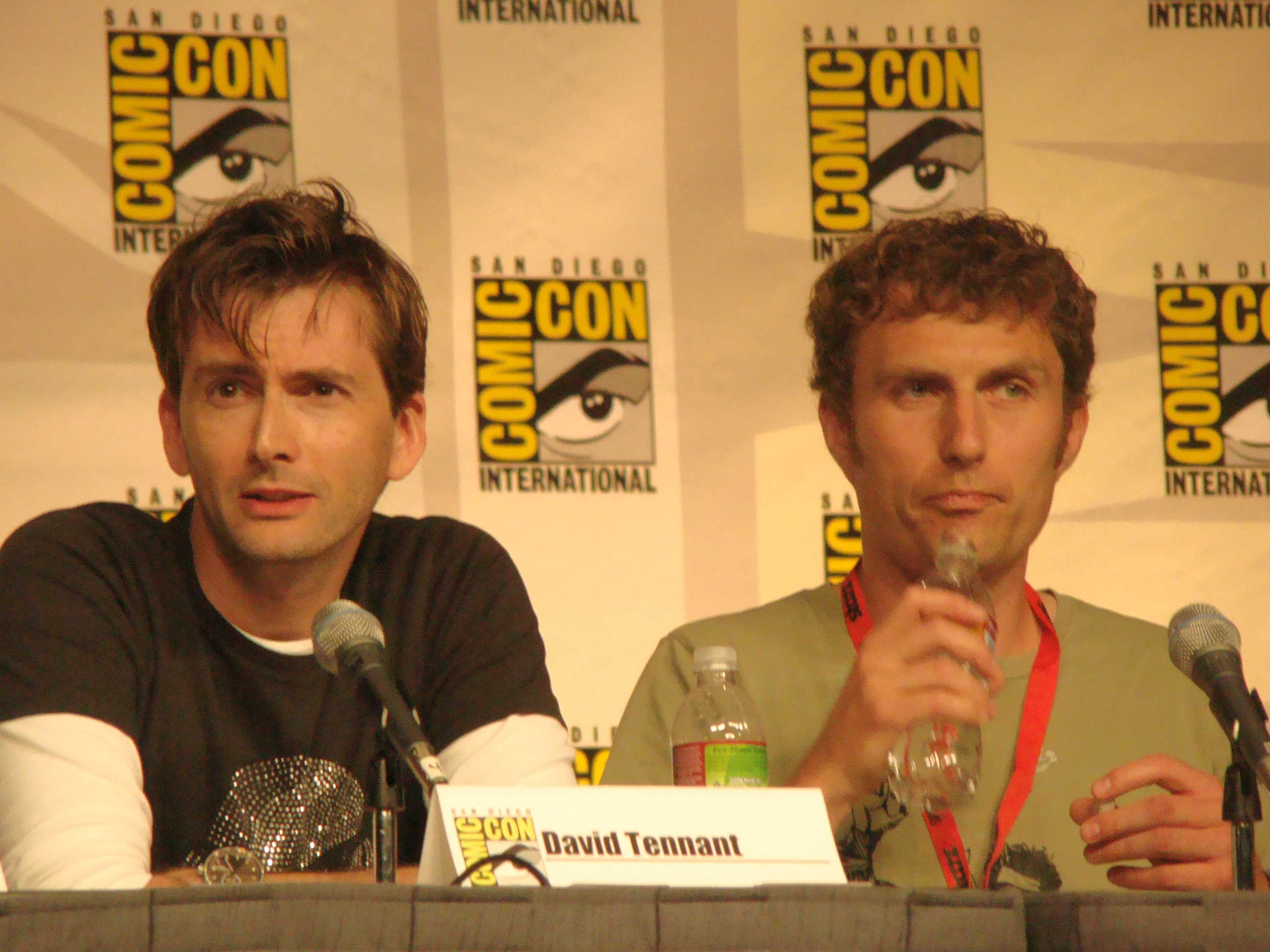 유로스 린(오른쪽)과 배우 데이비드 테넌트가 2009년 샌디에이고 코믹콘에서