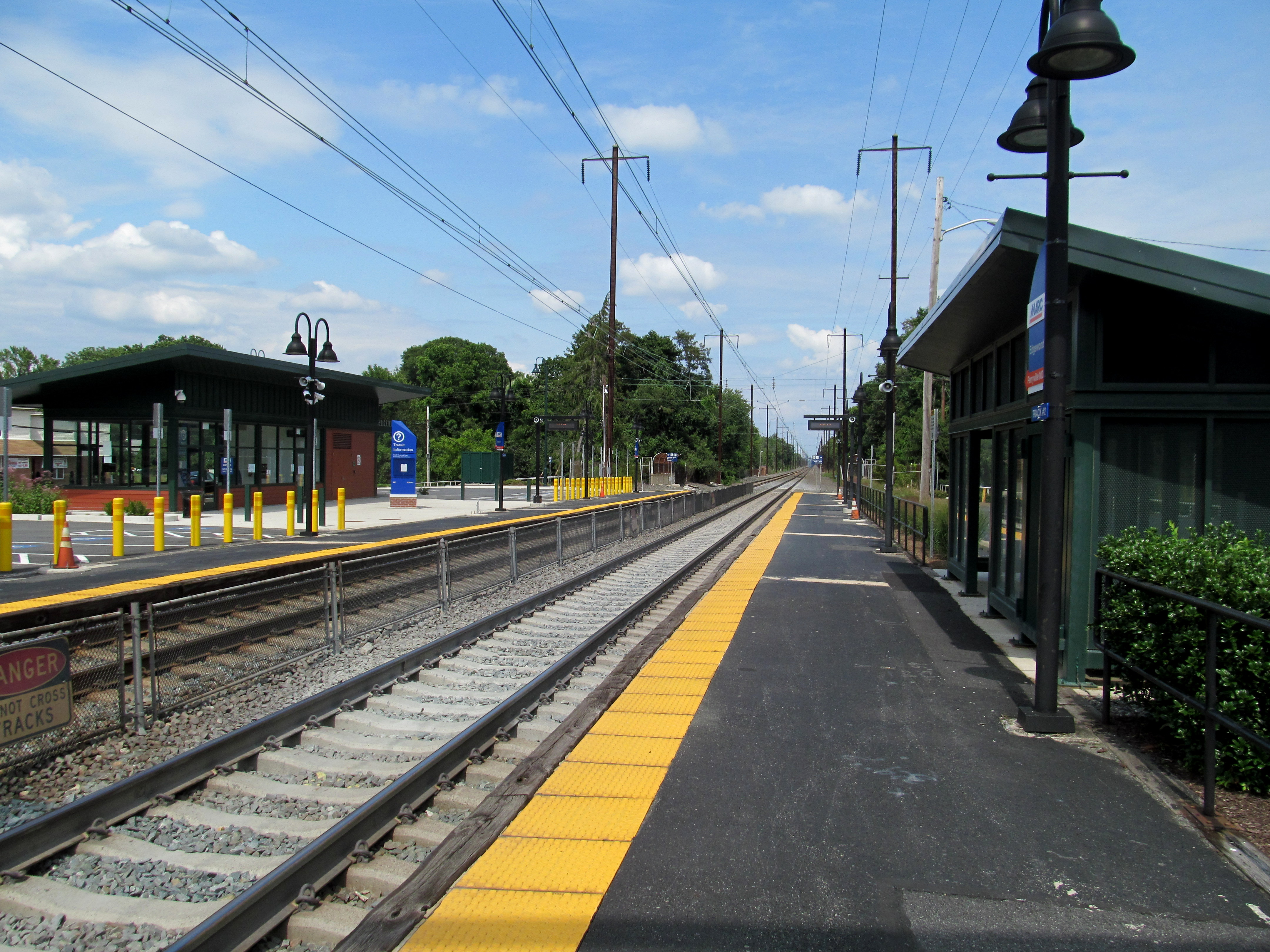 에지우드 역, MARC 기차 통근 열차가 볼티모어와 워싱턴 D.C.로 운행된다.