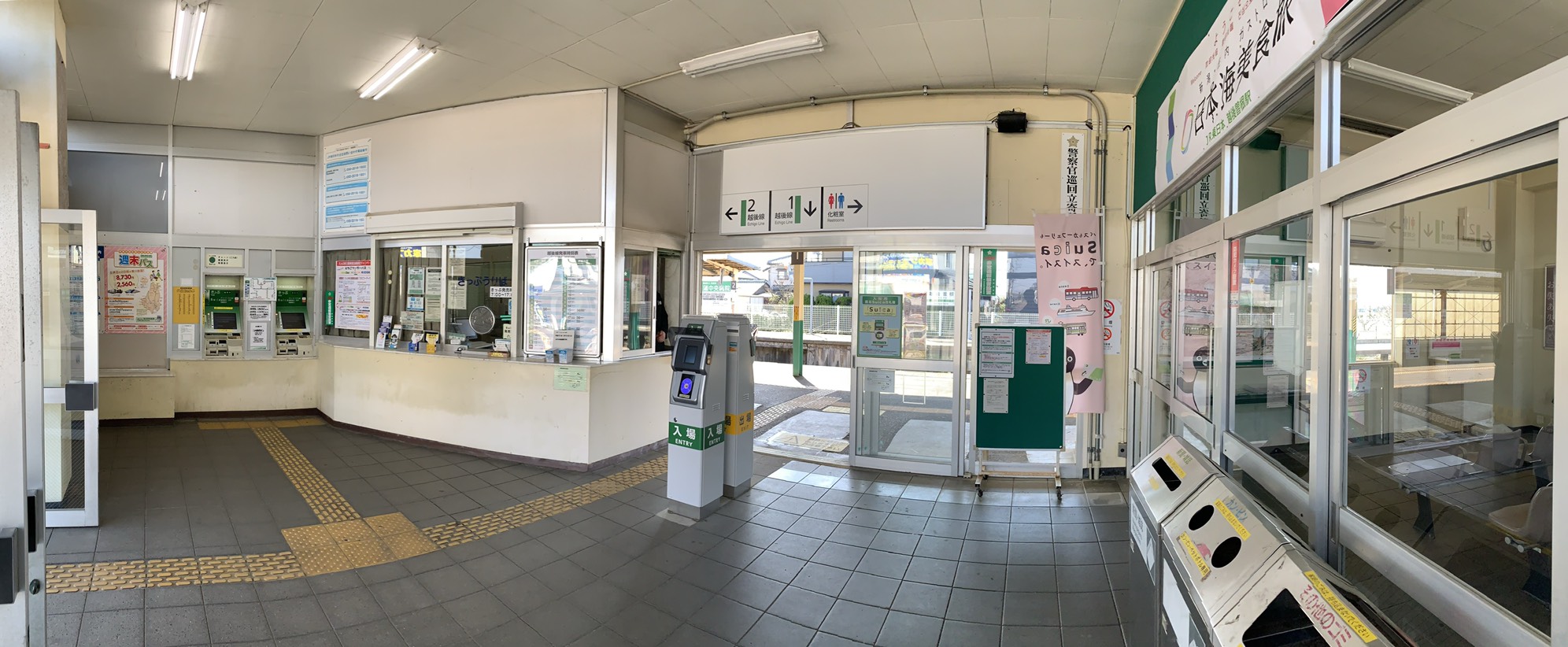 과거에는 구내에 키오스크가 있었으나, 2002년 9월에 폐점했다. 역 건물 내 자동 발권기 왼쪽에는 수하물 창구 흔적이 남아 있다.