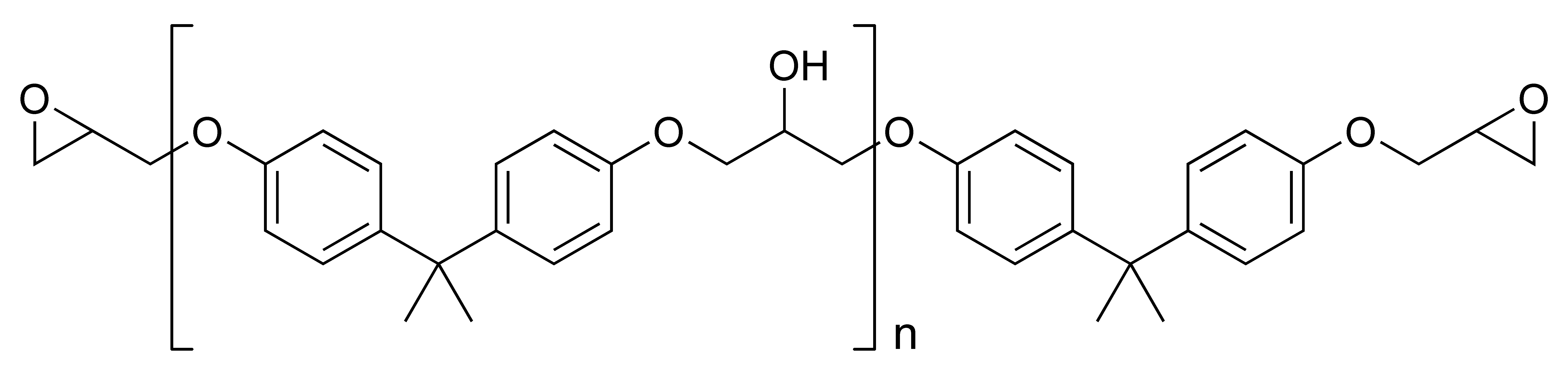 분자량이 더 높은 디글리시딜 에테르(n ≥ 1)는 비스페놀 A 디글리시딜 에테르와 추가적인 비스페놀 A의 반응(프리폴리머화)으로 형성된다.