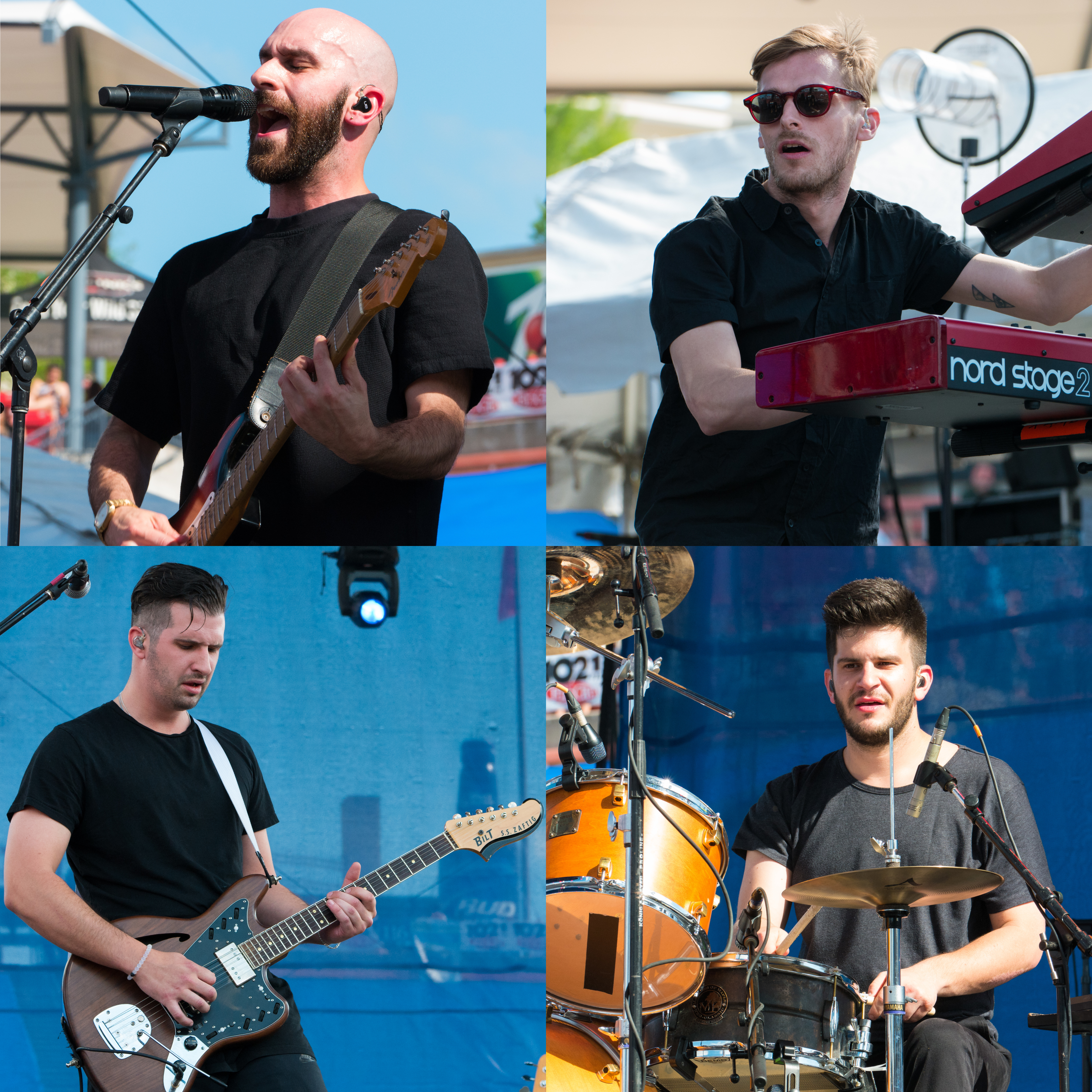 2016년 공연 모습. 시계 방향으로 왼쪽 상단부터 샘 넬슨 해리스, 케이시 해리스, 아담 레빈, 노아 펠드슈.
