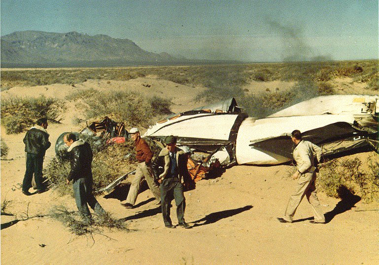 NRL 과학자 J. D. Purcell, C. Y. Johnson, F. S. Johnson 박사는 뉴멕시코 사막 상공의 고층 대기 연구에 사용된 V-2에서 장비를 회수하는 사람들 중 일부이다. 이것은 1951년 1월 18일에 발사된 V-2 번호 54이다(사진 제공: Richard Tousey 박사, NRL).
