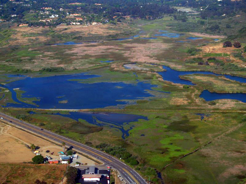 - 올드 엔시니타스: 다양한 상업 시설과 주택 형태가 혼합된 작은 해변 지역이다. 코스트 하이웨이 101번(역사적인 US 101)을 따라 위치해 있으며, 엔시니타스 환영 아치, 유명한 서핑 명소인 스와미스, 그리고 20세기 초의 라 팔로마 극장이 이곳에 있다. 올드 엔시니타스는 낮은 해안 능선으로 뉴 엔시니타스와 구분된다.