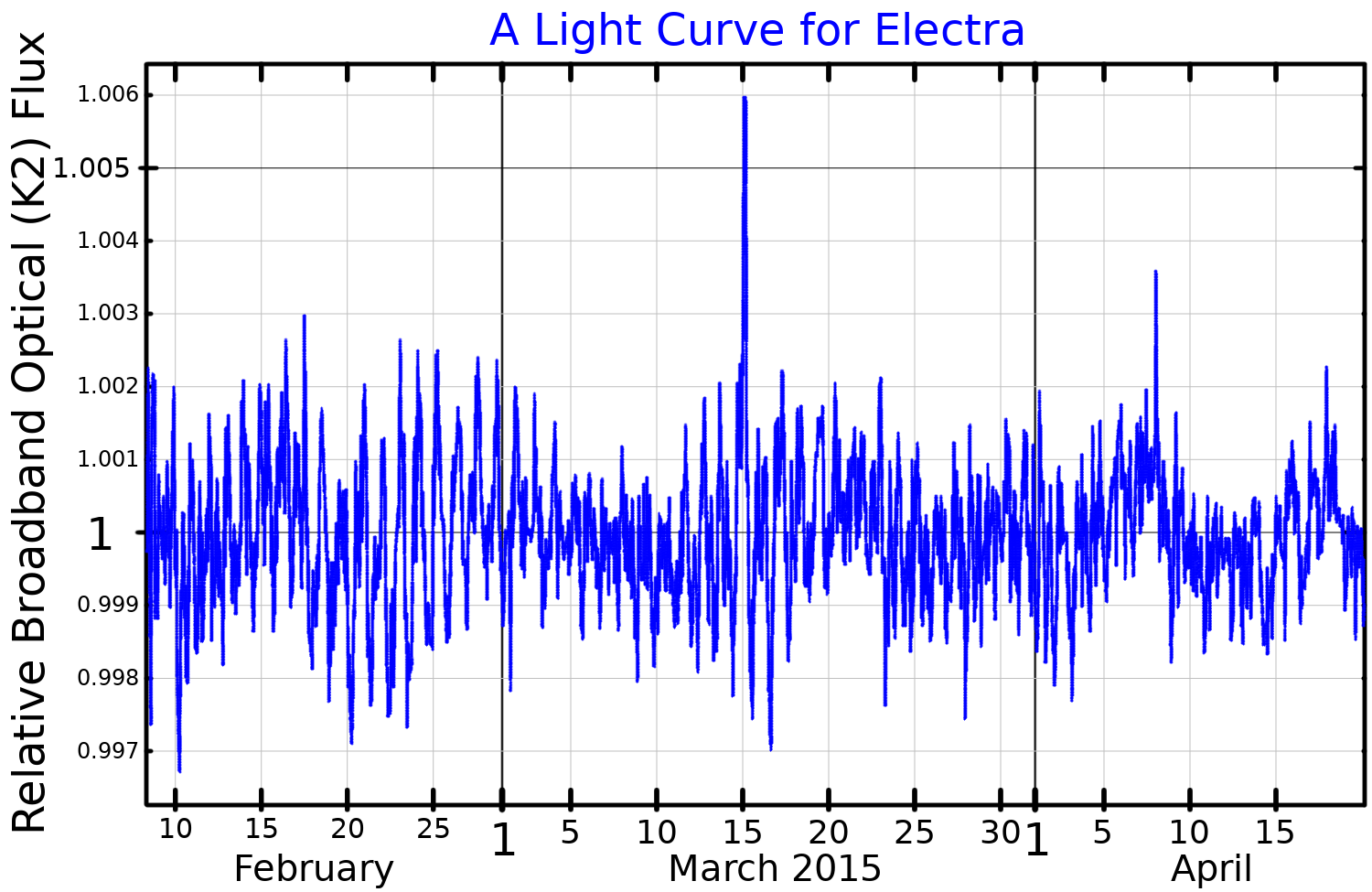 |thumb|left|White ''et al.'' (2017)에 적응된 엘렉트라의 광도 곡선[16]]]