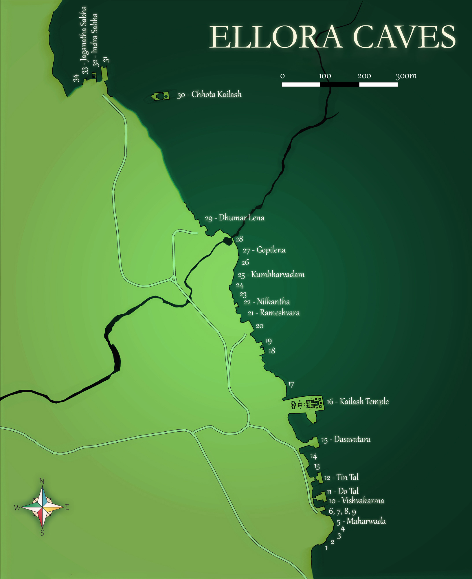 엘로라는 인도 마하라슈트라 주의 아우랑가바드에서 약 30km 떨어진 마을이다. (현지에서는 에-로-라라고 발음하기도 한다.)