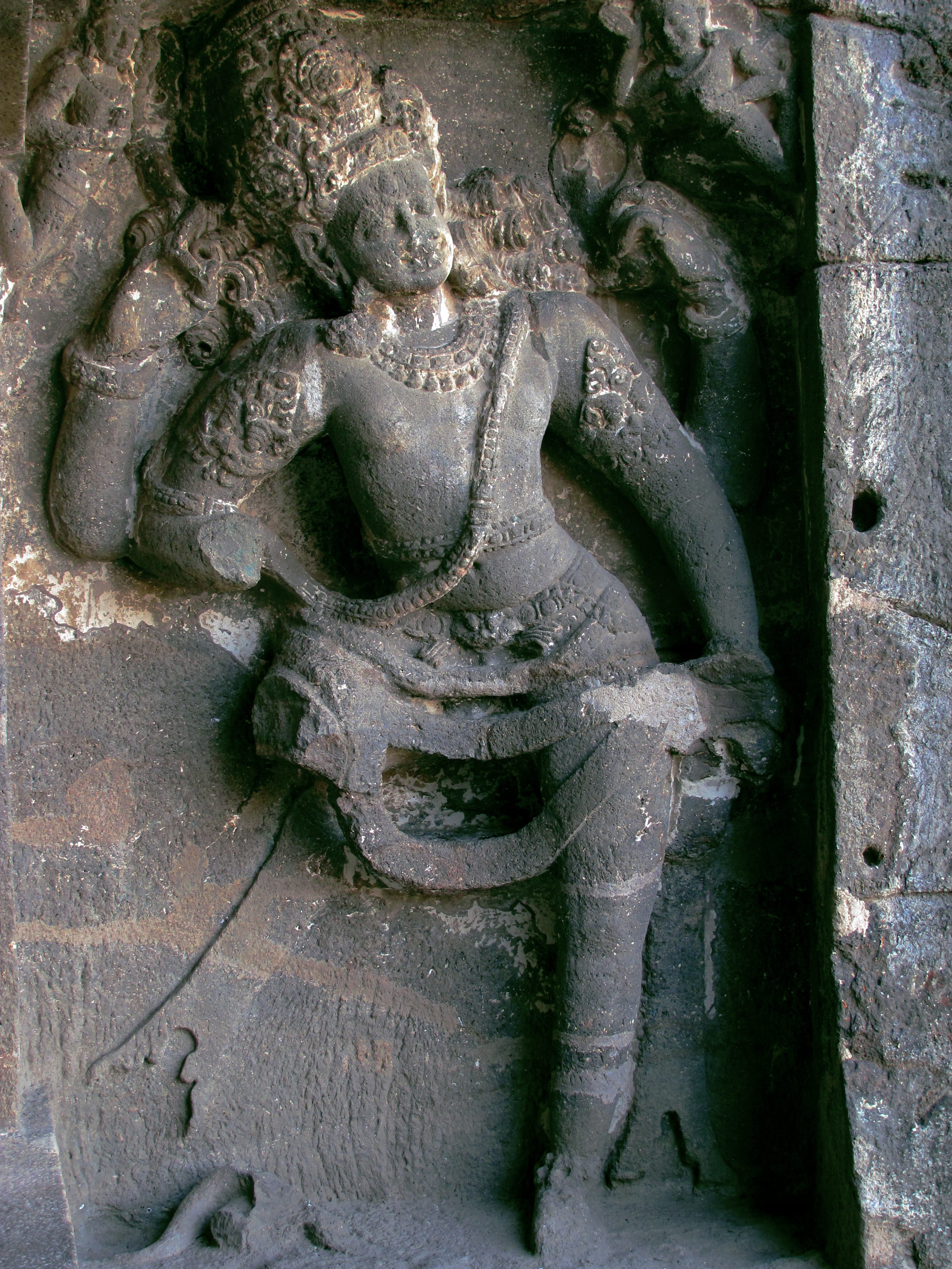 이 동굴은 다른 엘로라 동굴과 유사한 작품들을 특징으로 하지만, 여신 파르바티가 시바를 추구하는 이야기를 묘사한 조각상과 같은 독특한 작품들도 다수 보유하고 있다. 파르바티와 시바가 여가를 즐기는 모습, 시바와 파르바티의 결혼, 시바의 춤, 카르티케야(스칸다)를 묘사한 조각들이 다른 동굴에서도 발견되었다. 이 동굴은 또한 힌두교의 샥티 전통에서 일곱 어머니 여신인 사프타 마트리카를 크게 전시하고 있으며, 양옆에는 가네샤와 시바가 자리 잡고 있다. 사원 내부에는 샥티 전통에 중요한 다른 여신들, 예를 들어 두르가가 있다. 제21굴 입구 양옆에는 주요 히말라야 강 두 곳과 인도 문화에 대한 그들의 중요성을 나타내는 여신 갠가와 야무나의 대형 조각상이 있다.