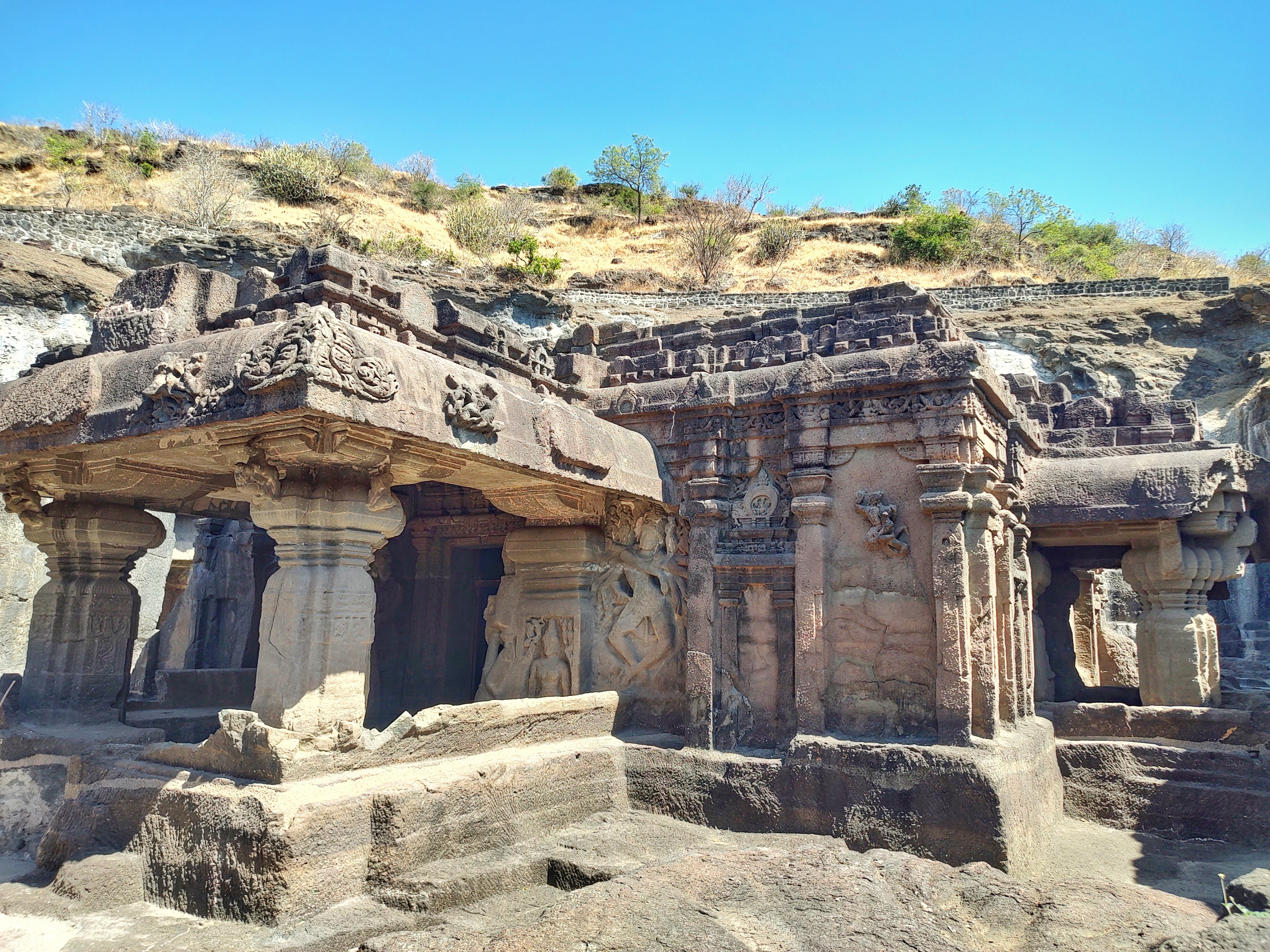 카일라사나타 사원은 파르테논 신전의 2배 정도 규모이며, 석굴이라기보다는 하나의 고층 건축물처럼 보이지만, 하나의 바위에서 굴착된 것이다.[52]