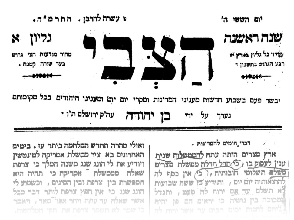 엘리에제르 벤 예후다는 히브리어 신문인 《하츠비》와 《하슈카파》의 편집인이었다. 《하츠비》는 히브리어를 일상 대화에 사용하는 것을 반대하는 예루살렘의 극단적 정통 유대교 공동체의 반대에 부딪혀 1년 동안 폐쇄되었다.[4] 1908년, 신문의 이름은 《하오르》로 바뀌었고, 제1차 세계 대전 중 오스만 제국 정부에 의해 이스라엘 땅/팔레스타인에 유대인 고향을 지지한다는 이유로 폐쇄되었다.당시 많은 독실한 유대인들은 벤 예후다의 히브리어 부활 노력을 좋지 않게 보았다. 그들은 성경 히브리어로 배운 히브리어는 세속적인 일들을 논의하는 데 사용되어서는 안 된다고 믿었다.[7]